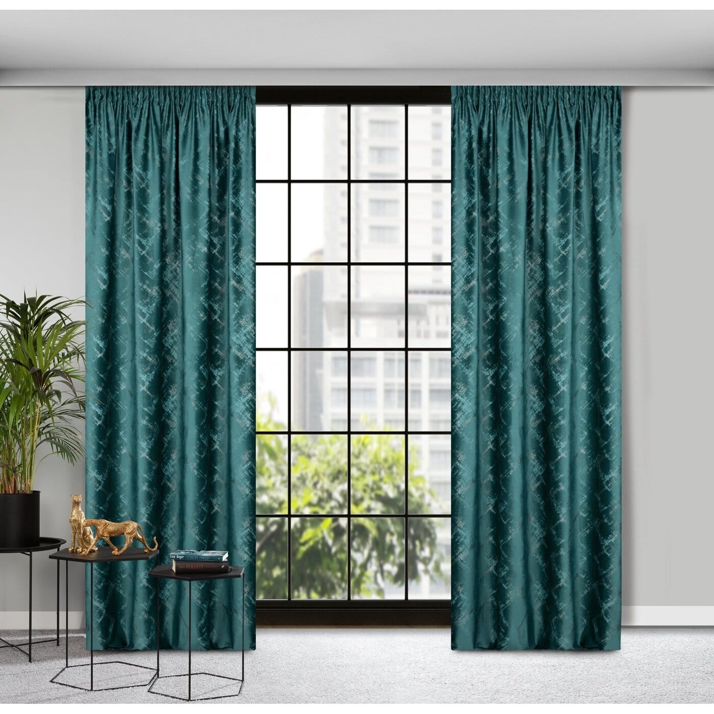 Adria - originální design závěsů - hebký velvet v tyrkysové barvě, na ploše dekorace nepravidelnými tahy štětcem v šampaňské barvě.