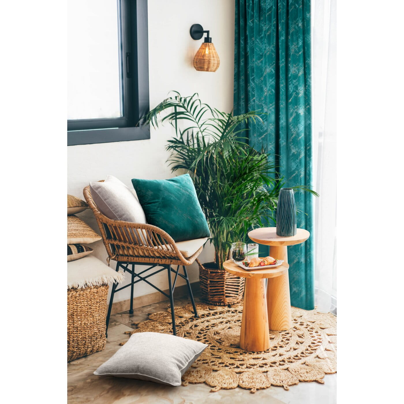 Dekorace prolomí opticky plochu závěsu, v interiéru tak nebude působit jako jednobarevný blok