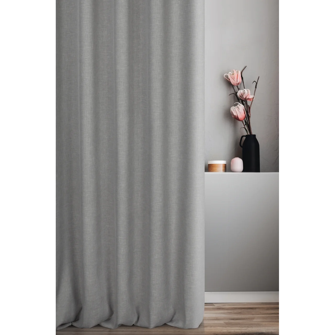 Závěs Aparte, hebká látka s módním ozdobným splotem ve stylu eko, opticky vytváří jemné proužky, barva šedá popelavá melanž