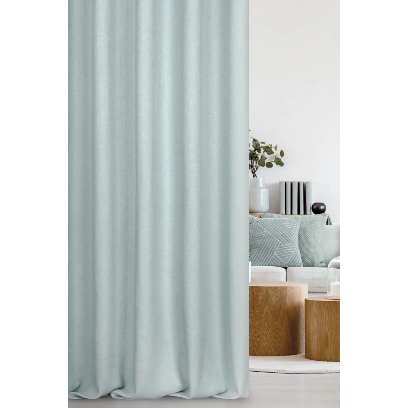 Závěs Aparte, hebká látka s módním ozdobným splotem ve stylu eko, opticky vytváří jemné proužky, barva světle modrá melanž