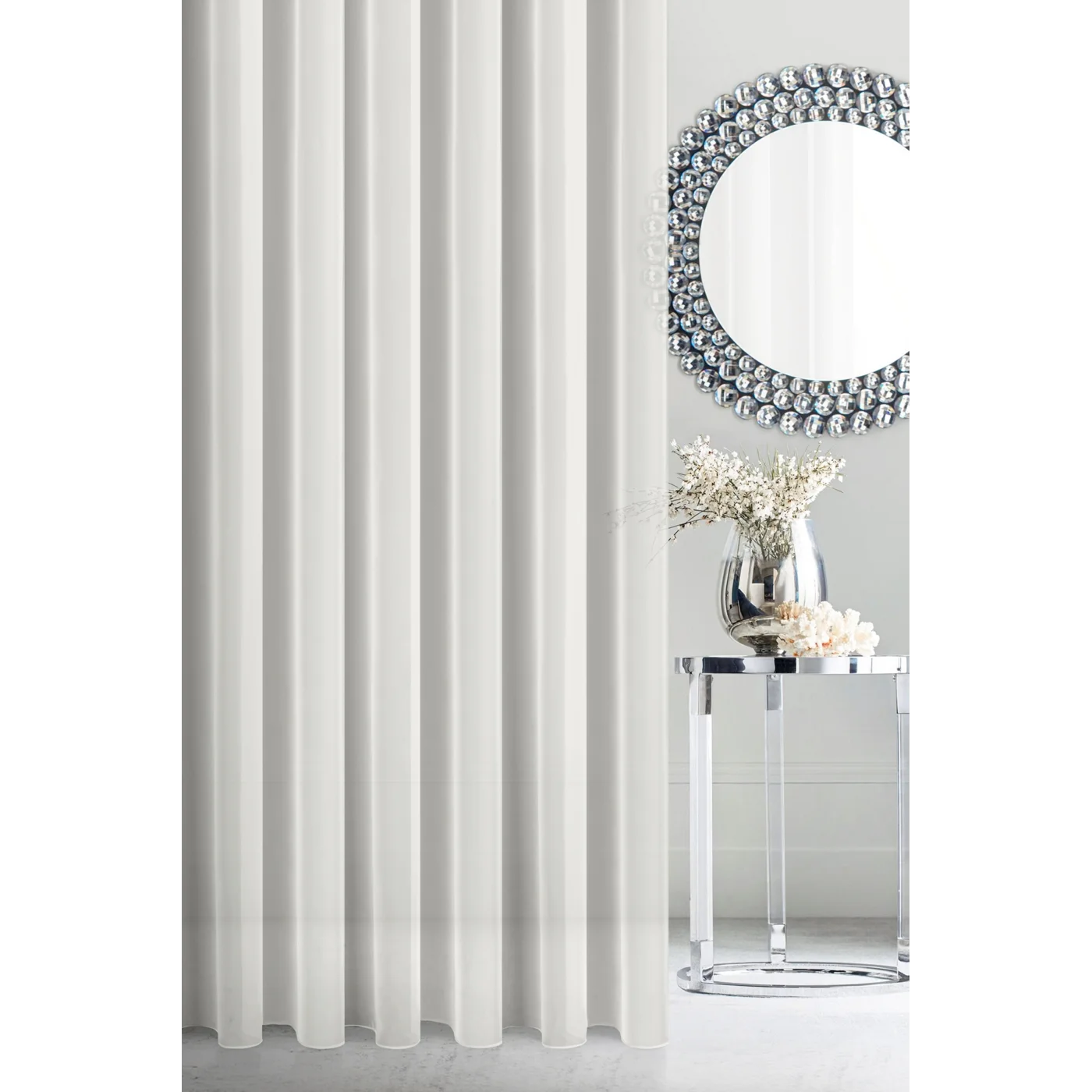 Záclona je ušita jako kompletní, dokončená, připravená ihned k zavěšení