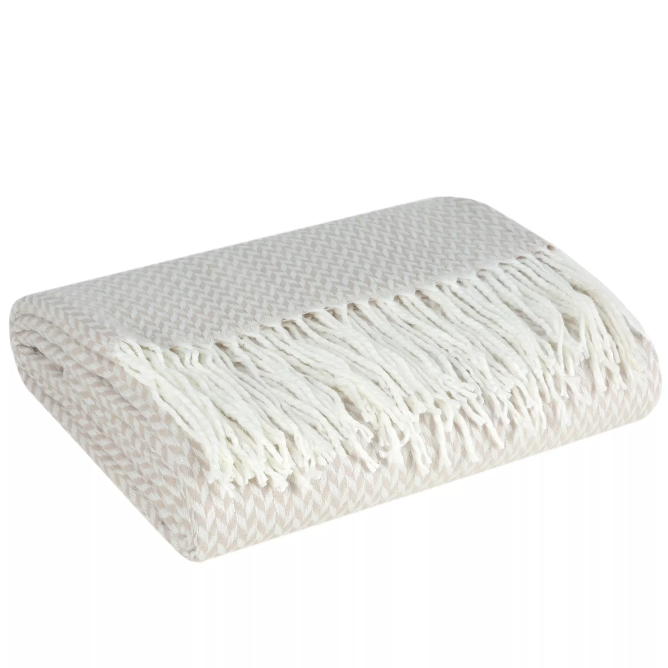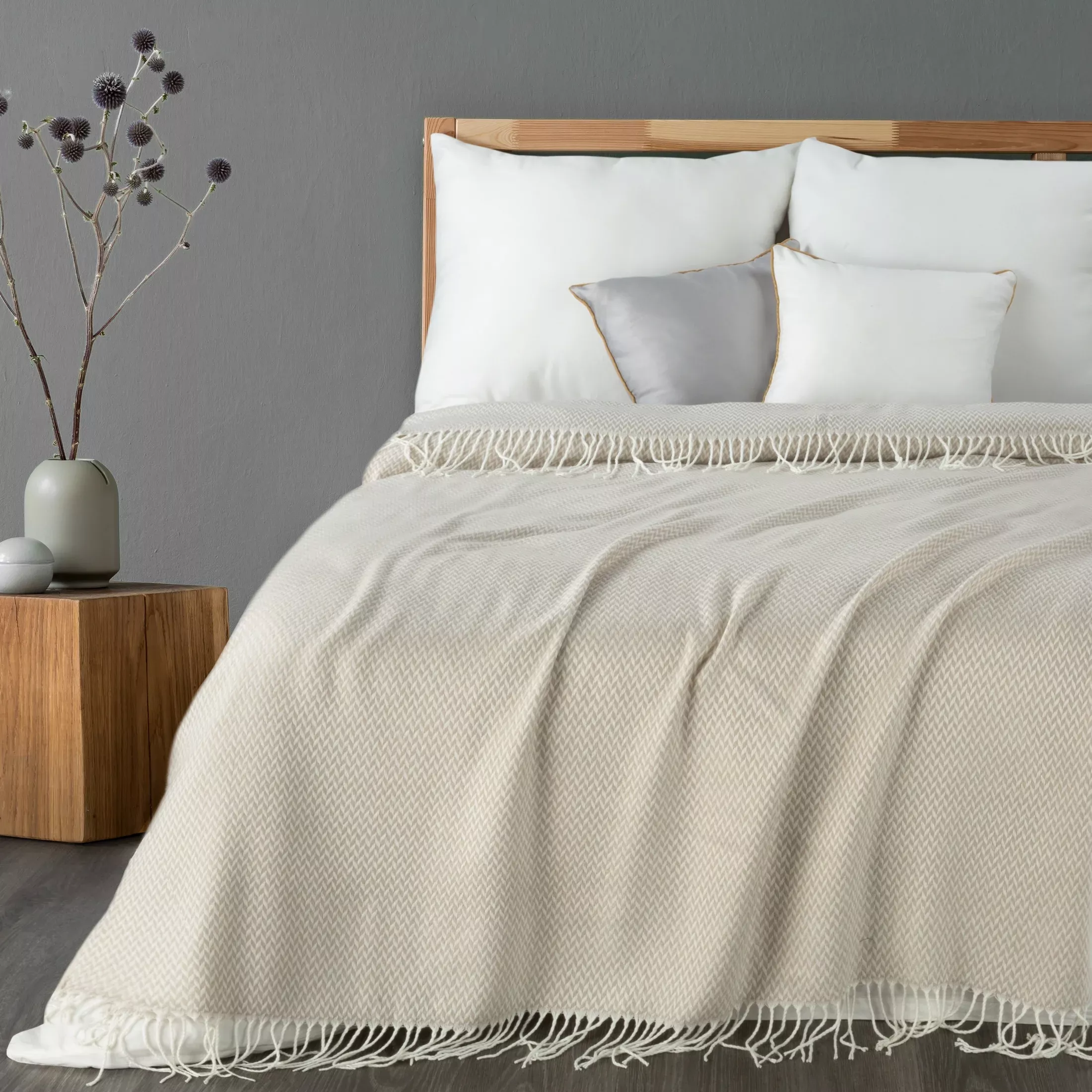 Deka Akryl3 béžová-bílá, řada Milaline, strukturální vzora, na 2 stranách třásně