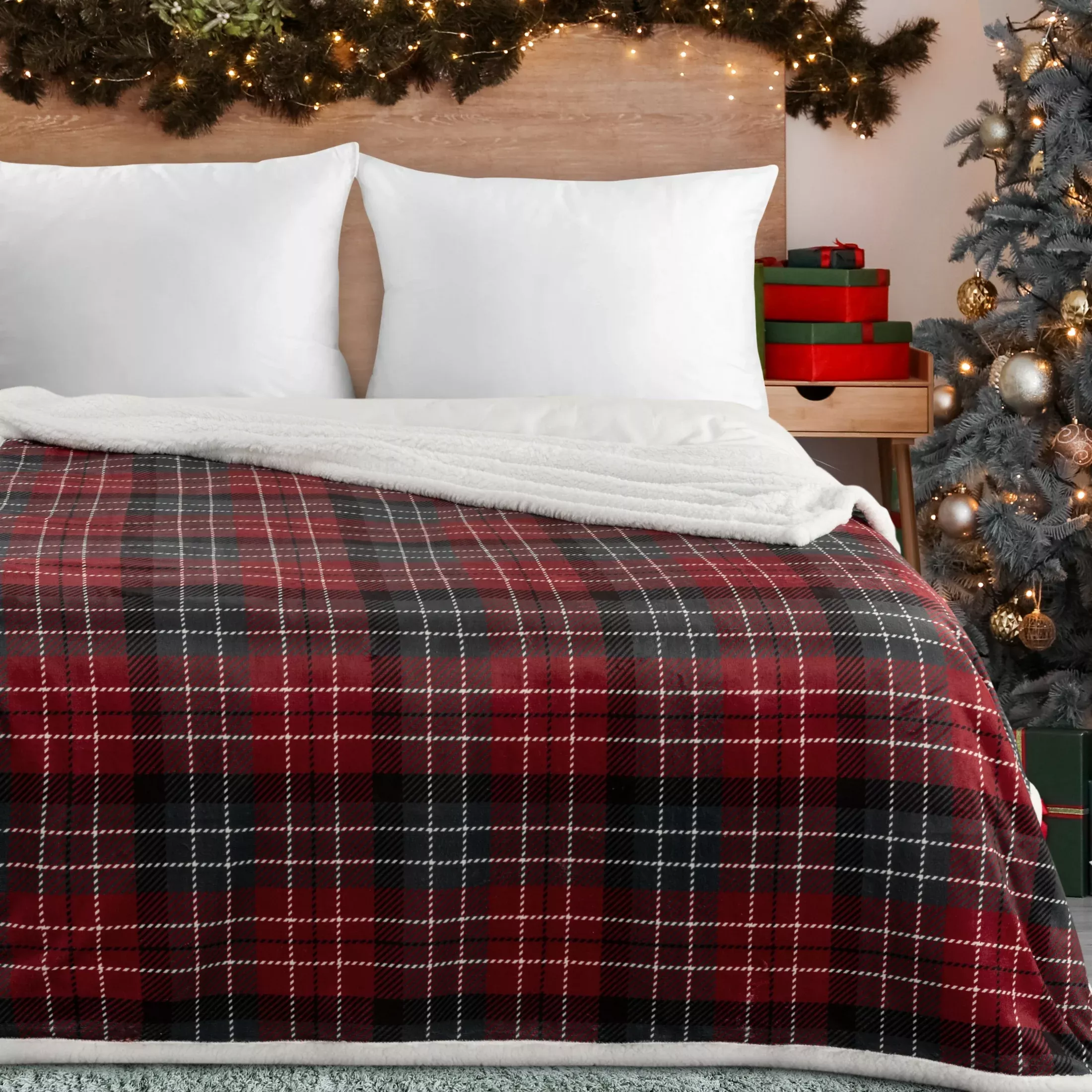 Deka K18 TOP Classic, hebká a hřejivá, vrchní látka typ falo , potisk vzorem kostky, rubová strana hřejivá bukla - beránek v barvě bílé