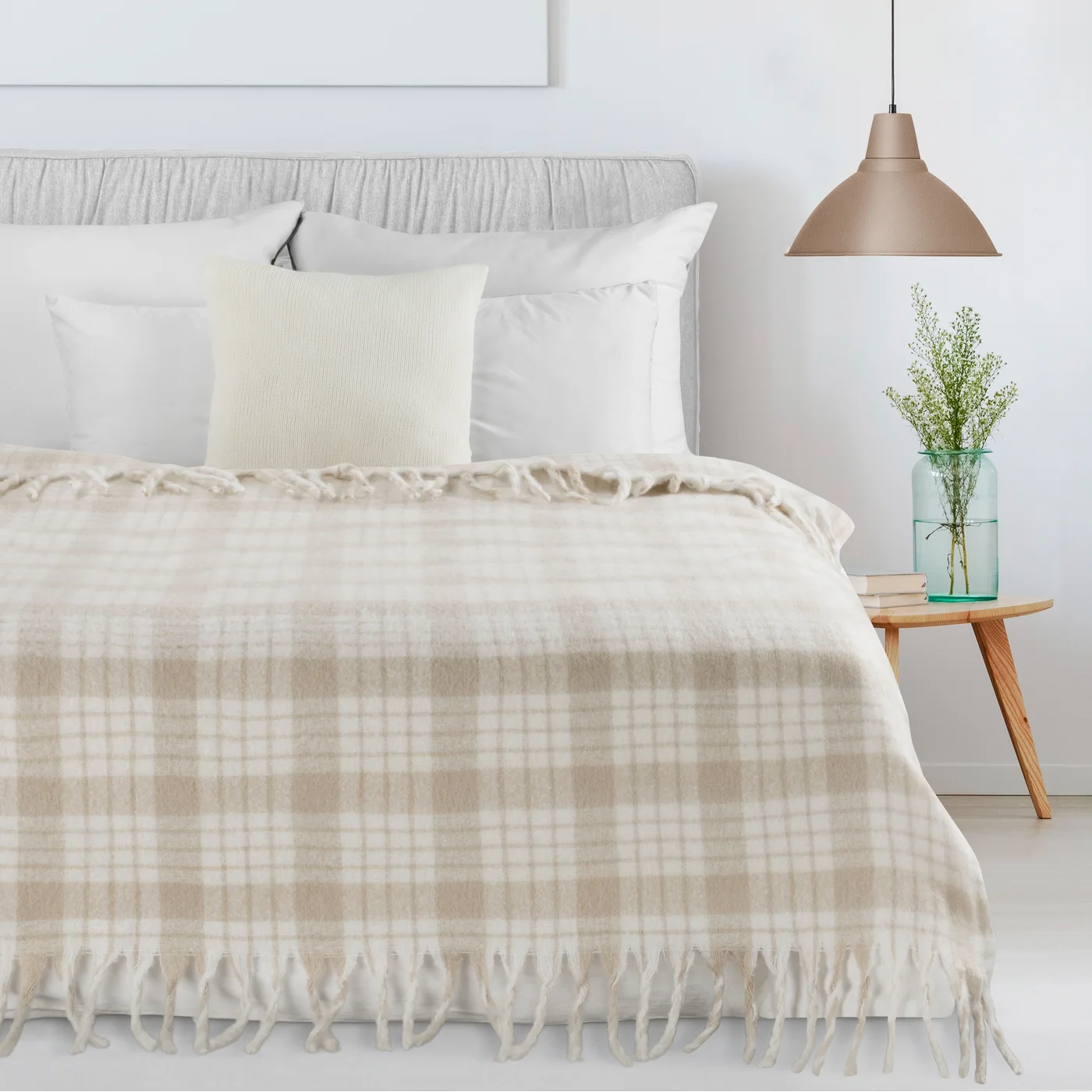Deka řady Mila Line, vzor Moher8, hebká látka s mohérovou úpravou, třásně, béžově-krémová koloristika