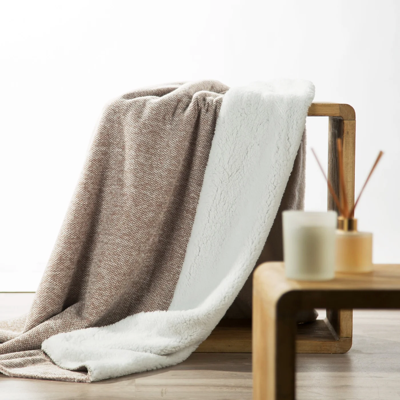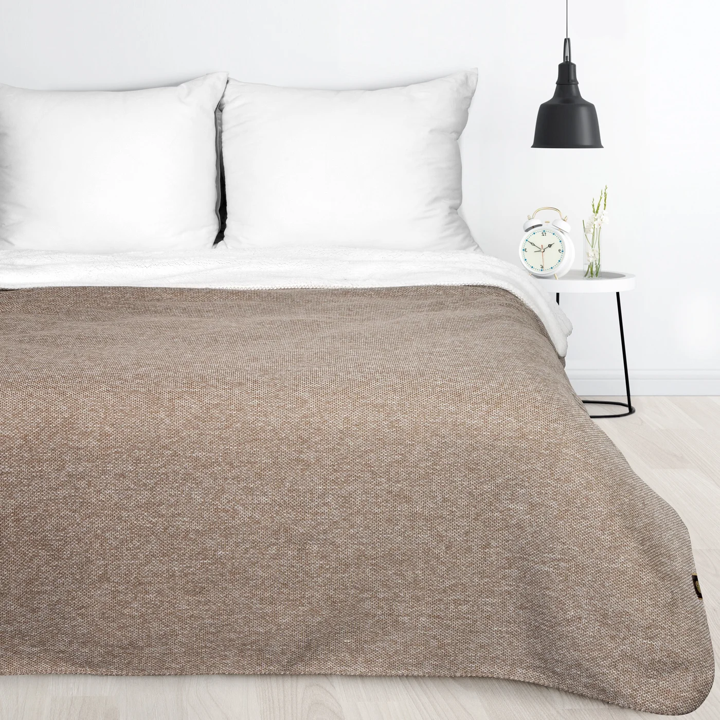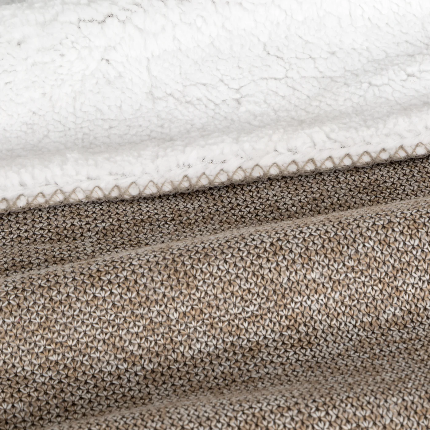 Deka Panda, oboustranné provedení, efektní kombinace styl úplet a buklé - beránek, barva béžová melanž a bílá