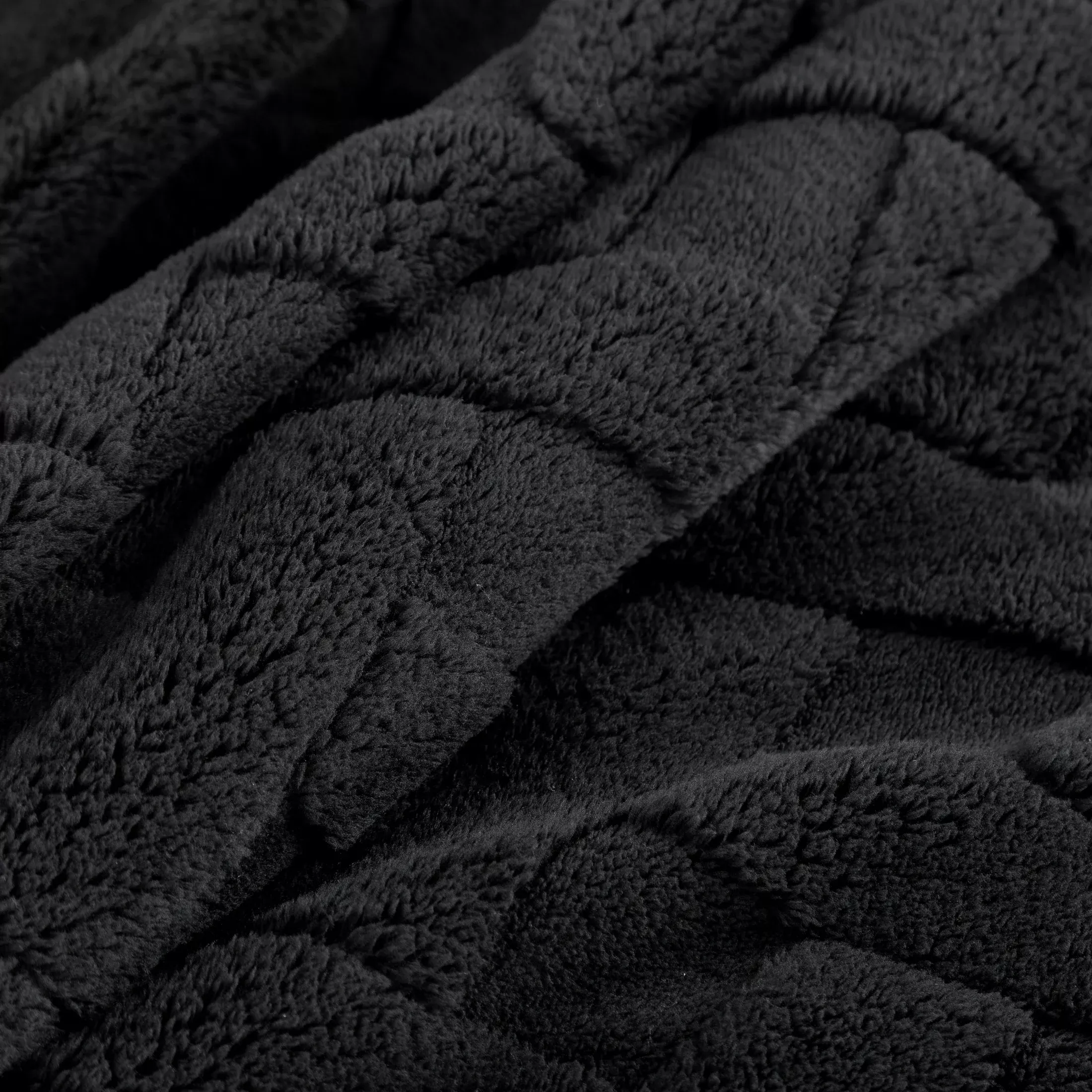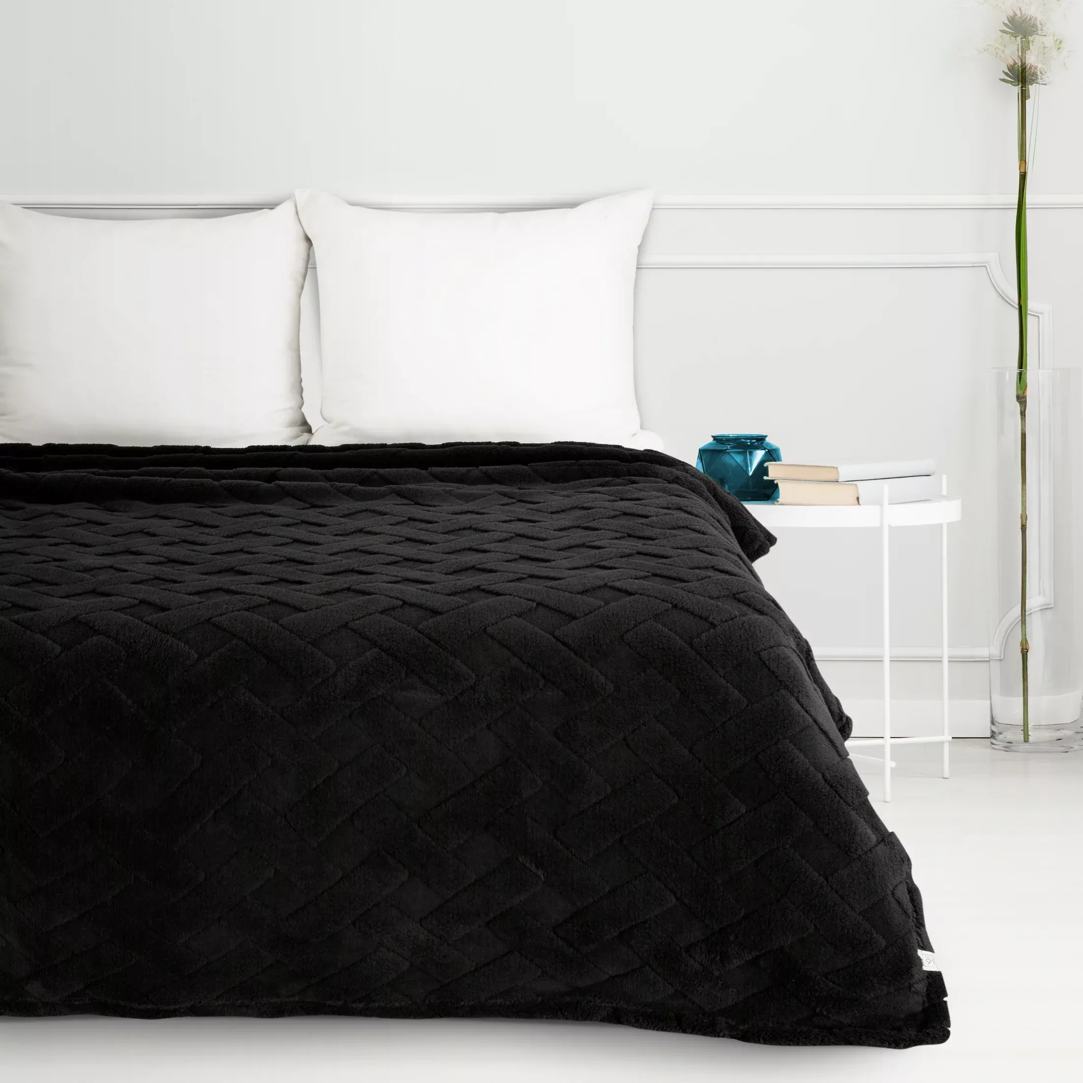 Deka - přehoz Caro, hebký mikroplyš, barva černá, 3D proplétaný vzor