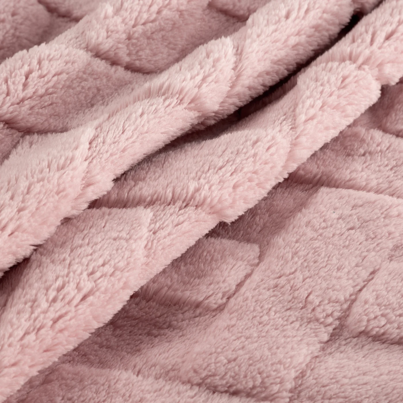 Deka - přehoz Caro, hebký mikroplyš, barva světle růžová, 3D proplétaný vzor