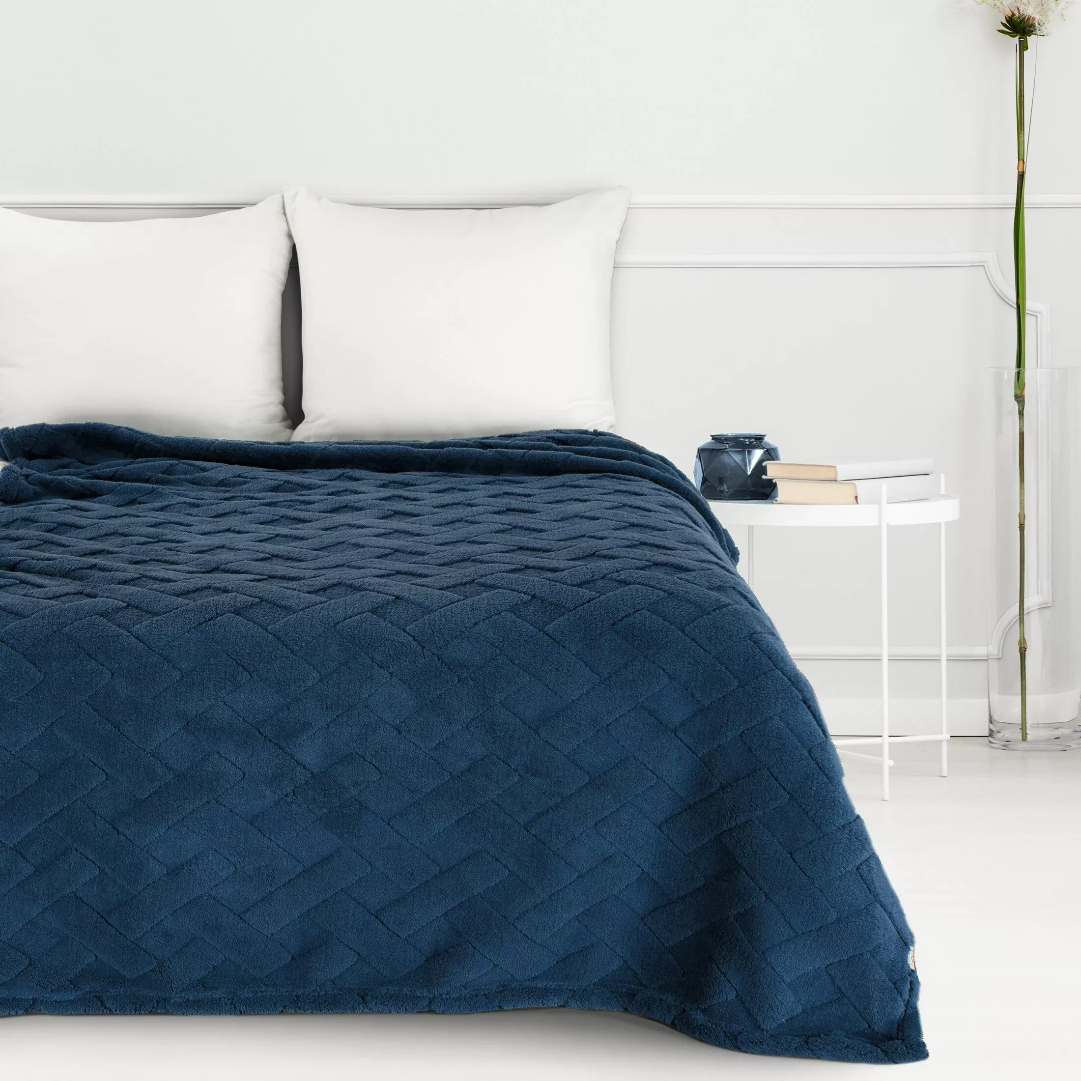 Deka - přehoz Caro, hebký mikroplyš, barva tmavě modrá, 3D proplétaný vzor