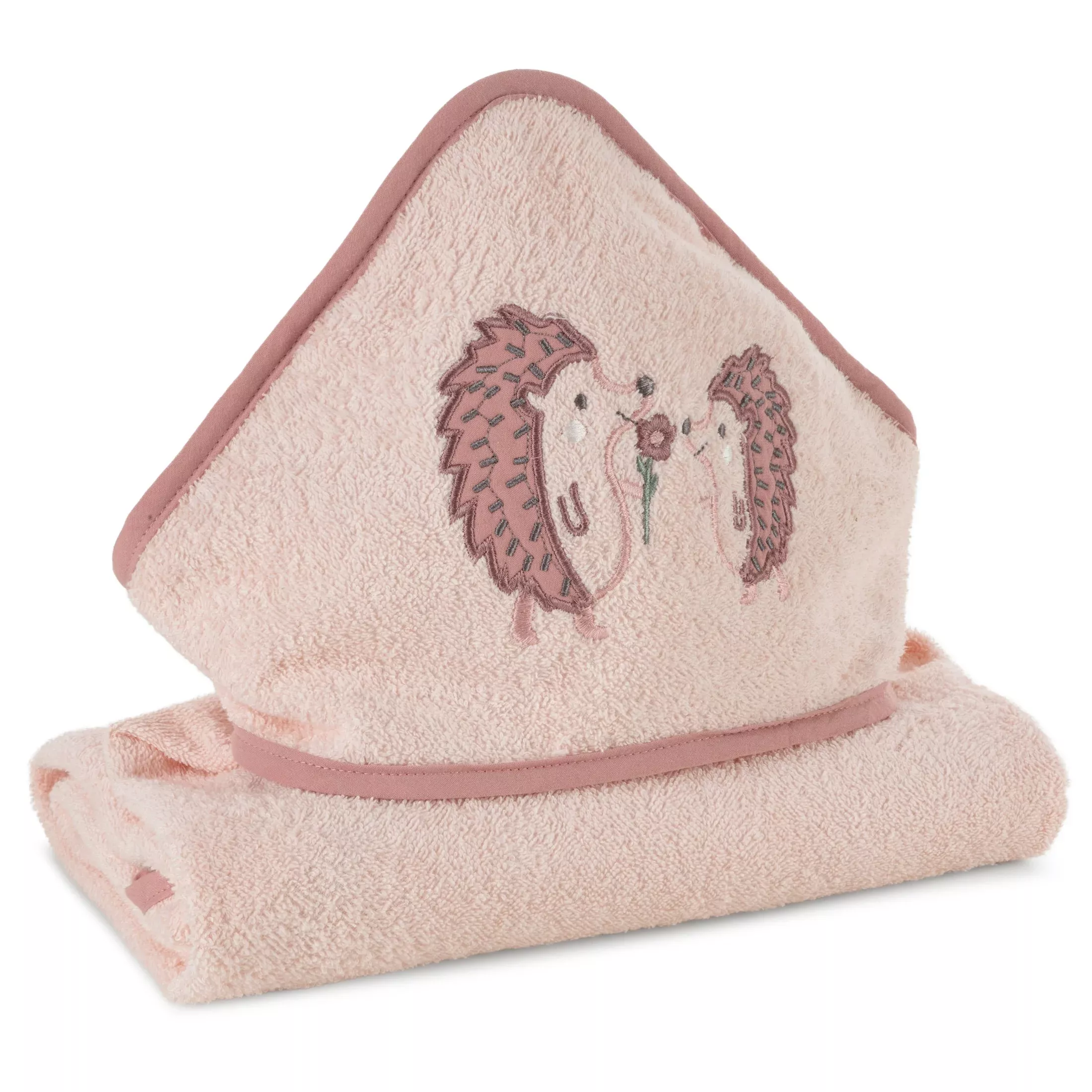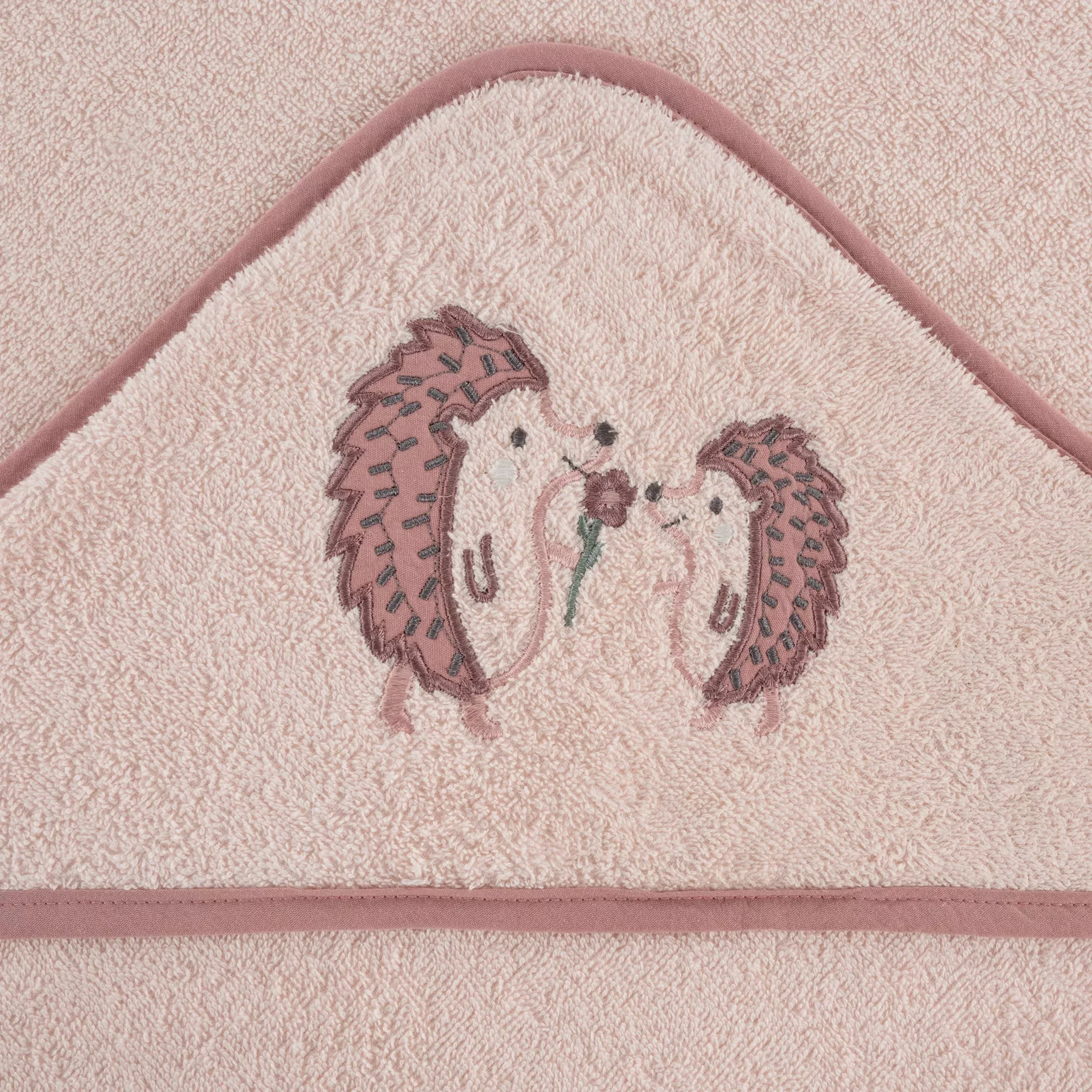 Dětská osuška s kapucí, vzor Baby68, barva růžová, dekorační výšivka ježci