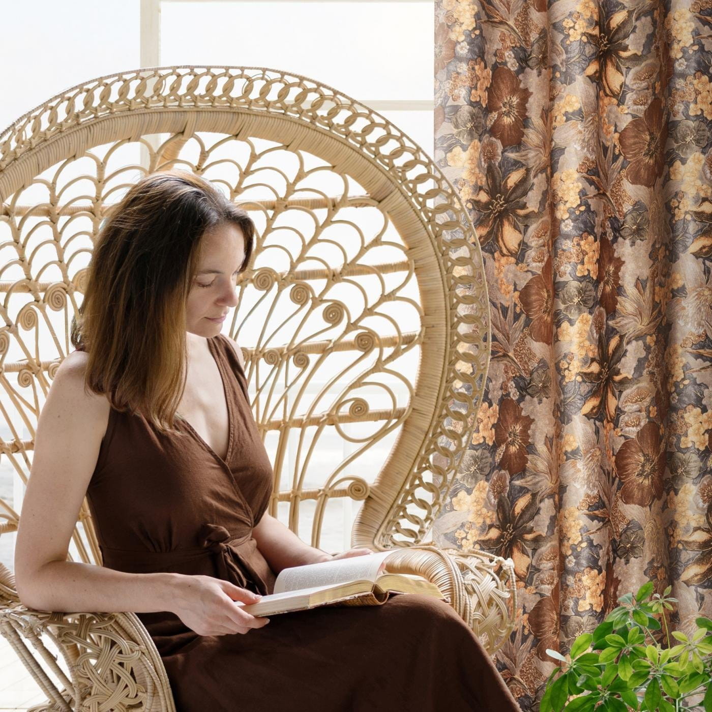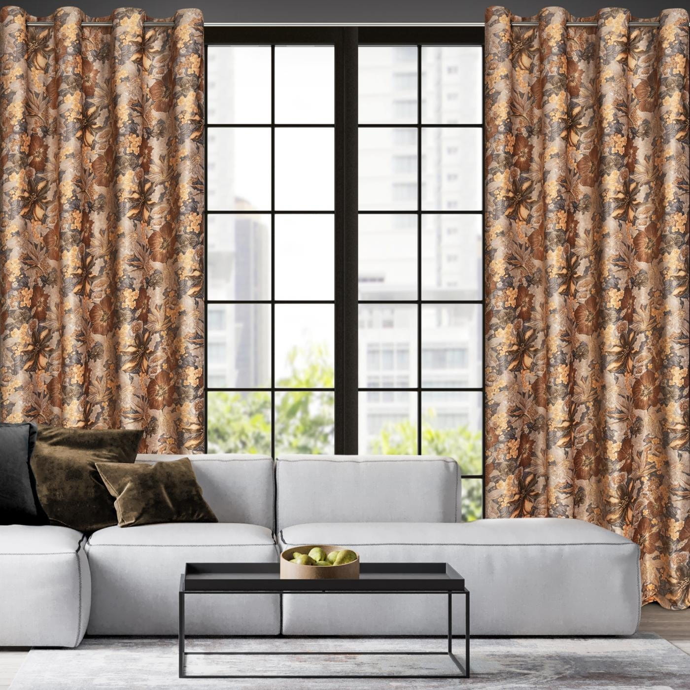 Diana - závěs se sytým potiskem, efektní květové motivy v měděné koloristice.