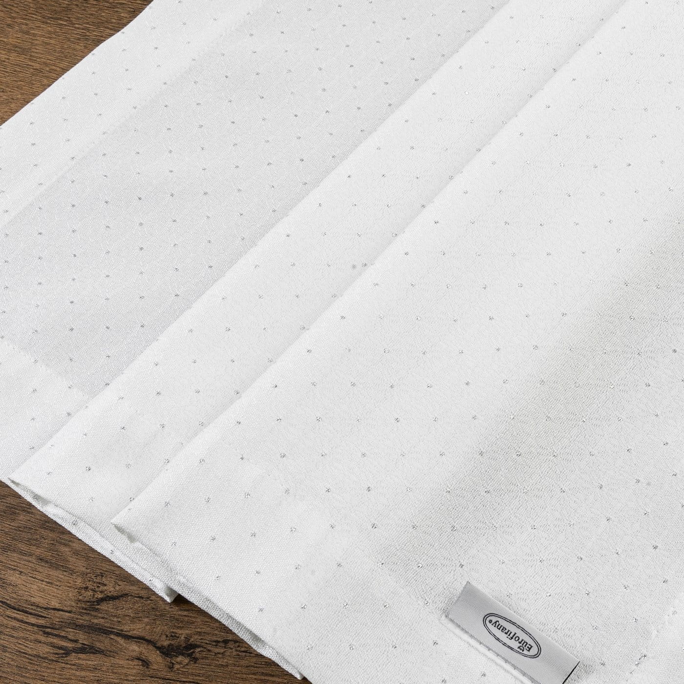 Eliza - klasický bílý jednoduchý stolní běhoun se stříbrnými tečkami a širokým lemem, 40x140cm