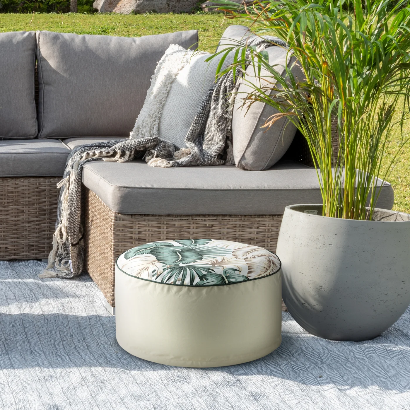 HIT - Větší sedací pufa Garden13, vodoodpudivá látka, průměr 53cm, stahovací potah, vnitřek nafukovací vložka