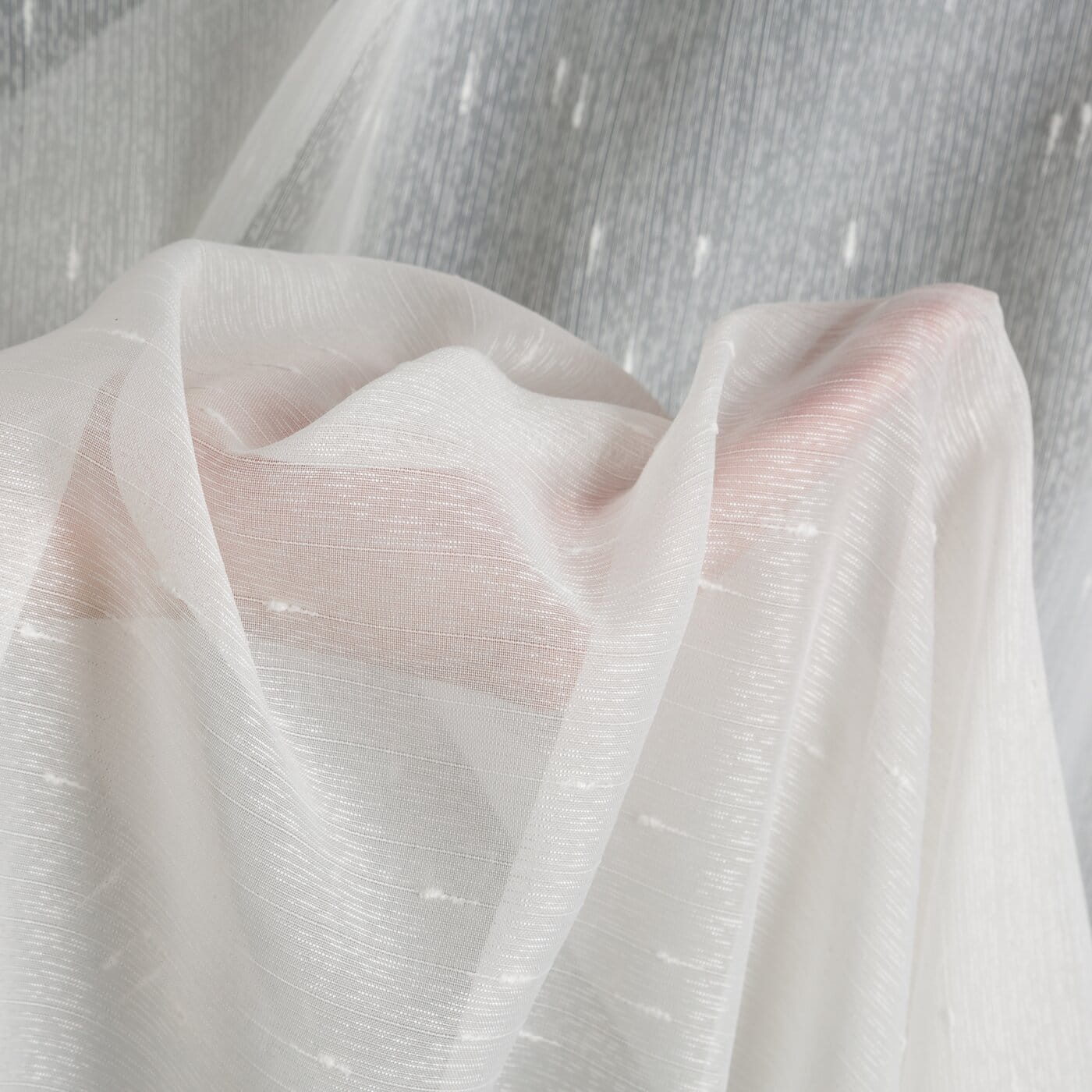 HIT - Záclona Vanita, šití na míru, jemně krémová matná látka, vzor jemného deštíku + zvýrazněné čárky