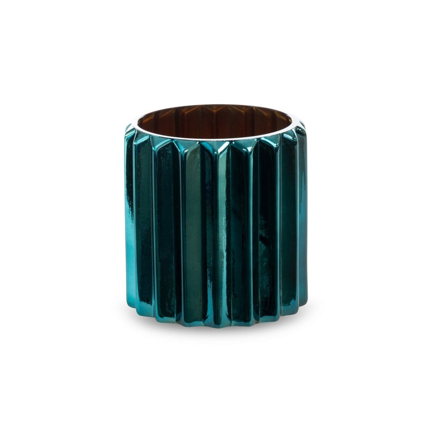 Irma - exkluzivní skleněné doplňky, tmavě tyrkysová/měděná barva, svícen výška 10cm