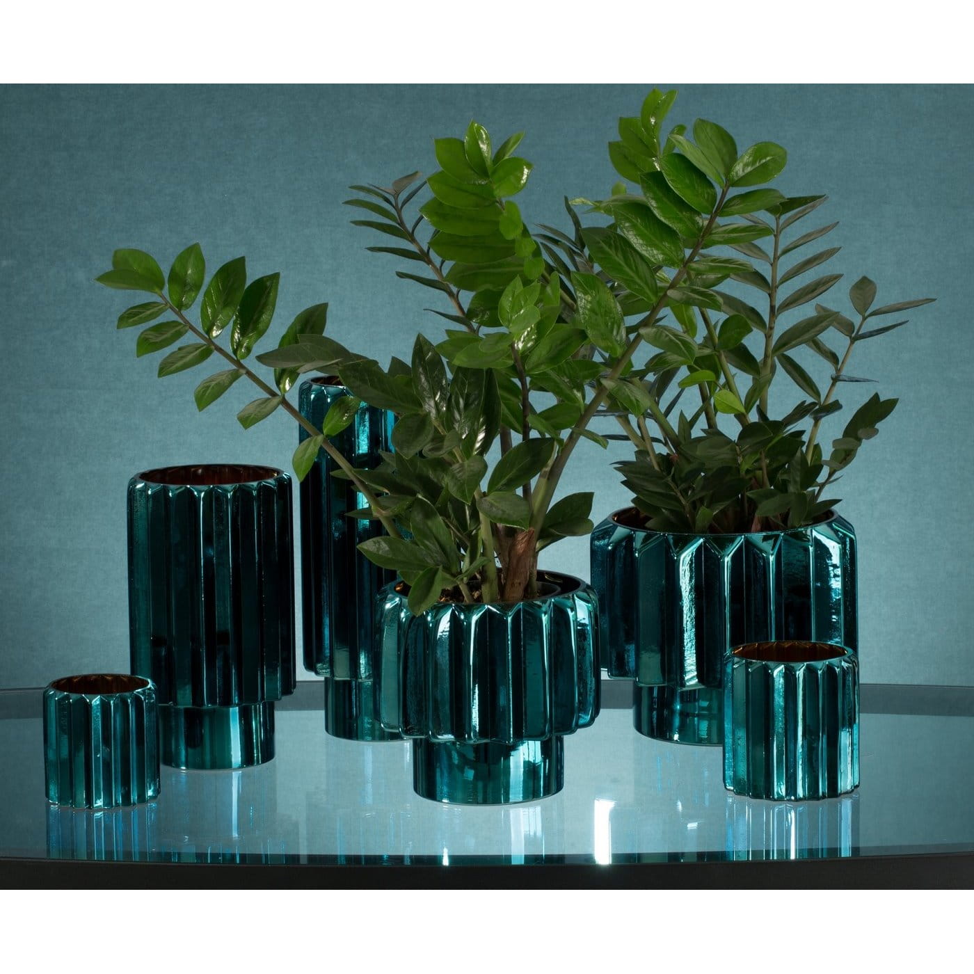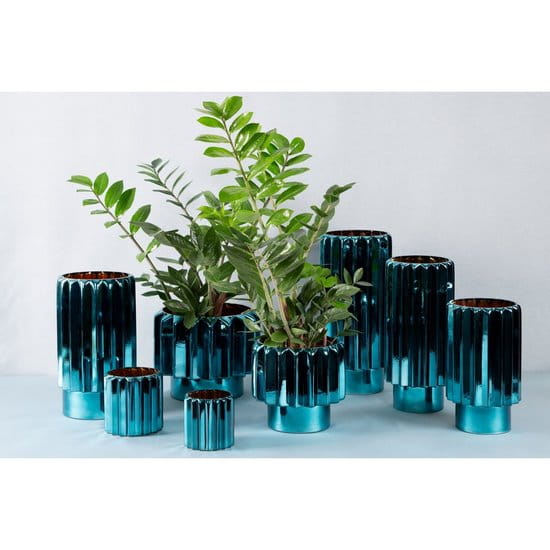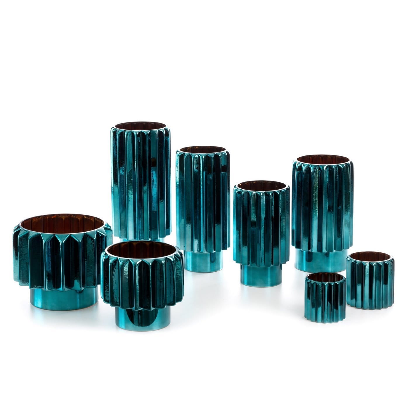 Irma- řada exkluzivních skleněných doplňků, TOP koloristika - vnější povrch tmavě tyrkysové sklo, vnitřní povrchy v měděné barvě.