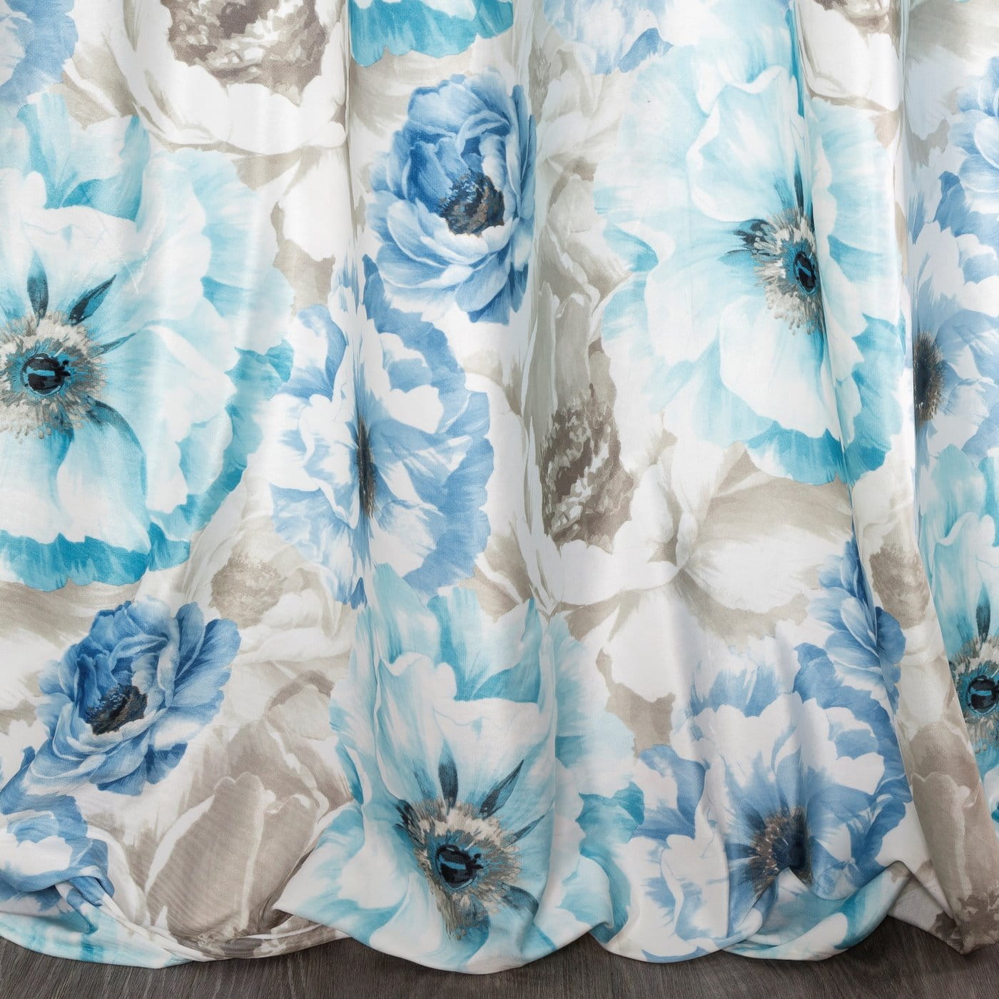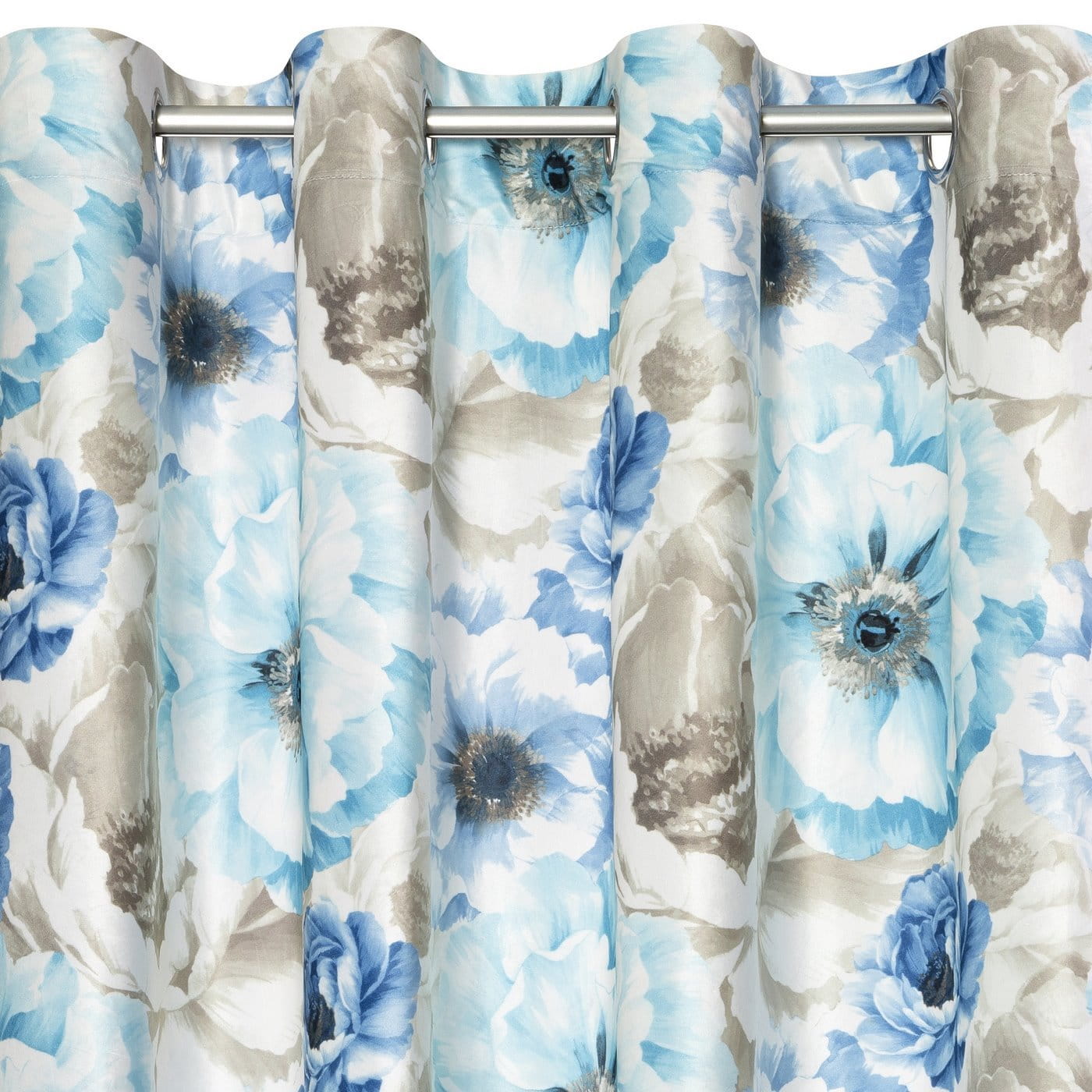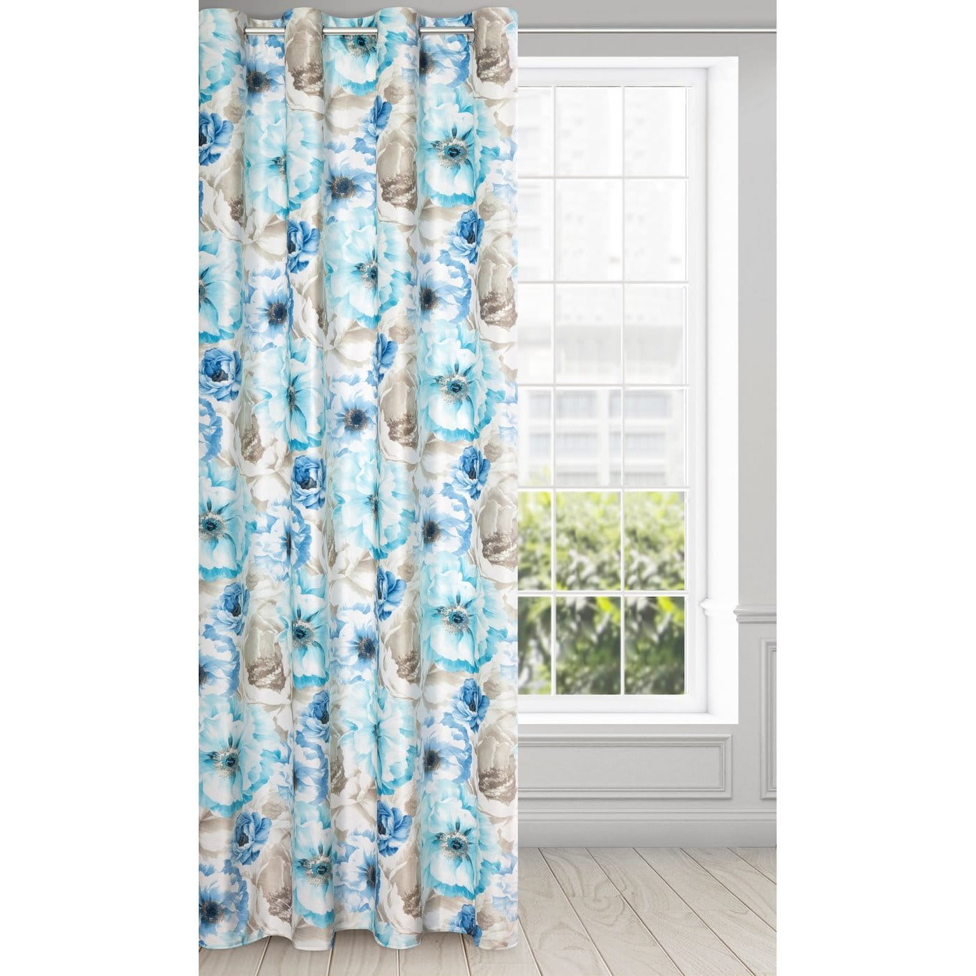 Jollie - závěs s květovým motivem, modrá koloristika, velvet, 140x250, na kroužcích, lze zkrátit