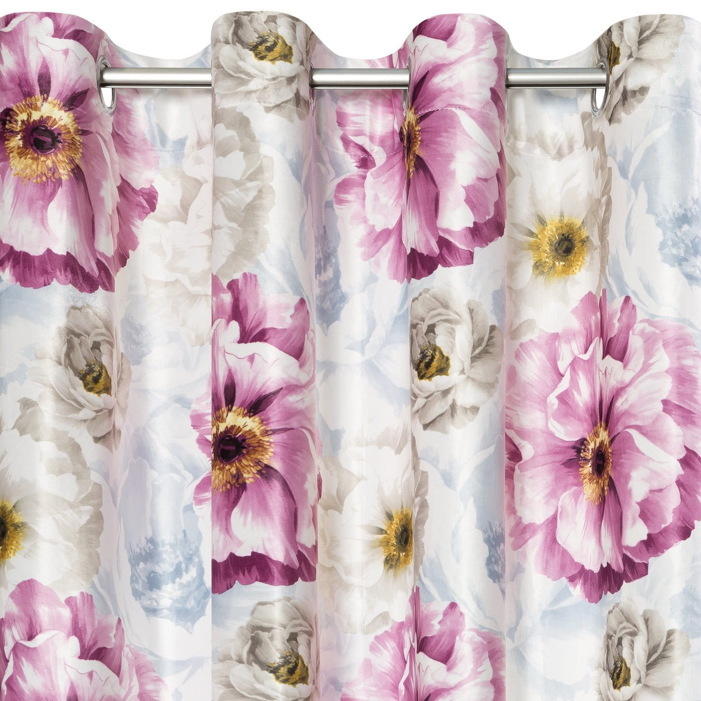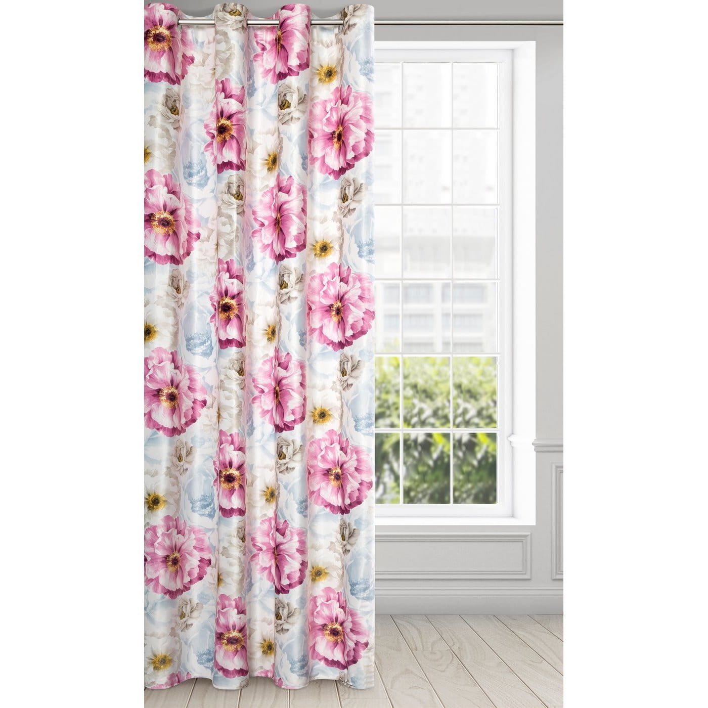 Jollie - závěs s květovým motivem, růžová koloristika, velvet, 140x250, na kroužcích, lze zkrátit