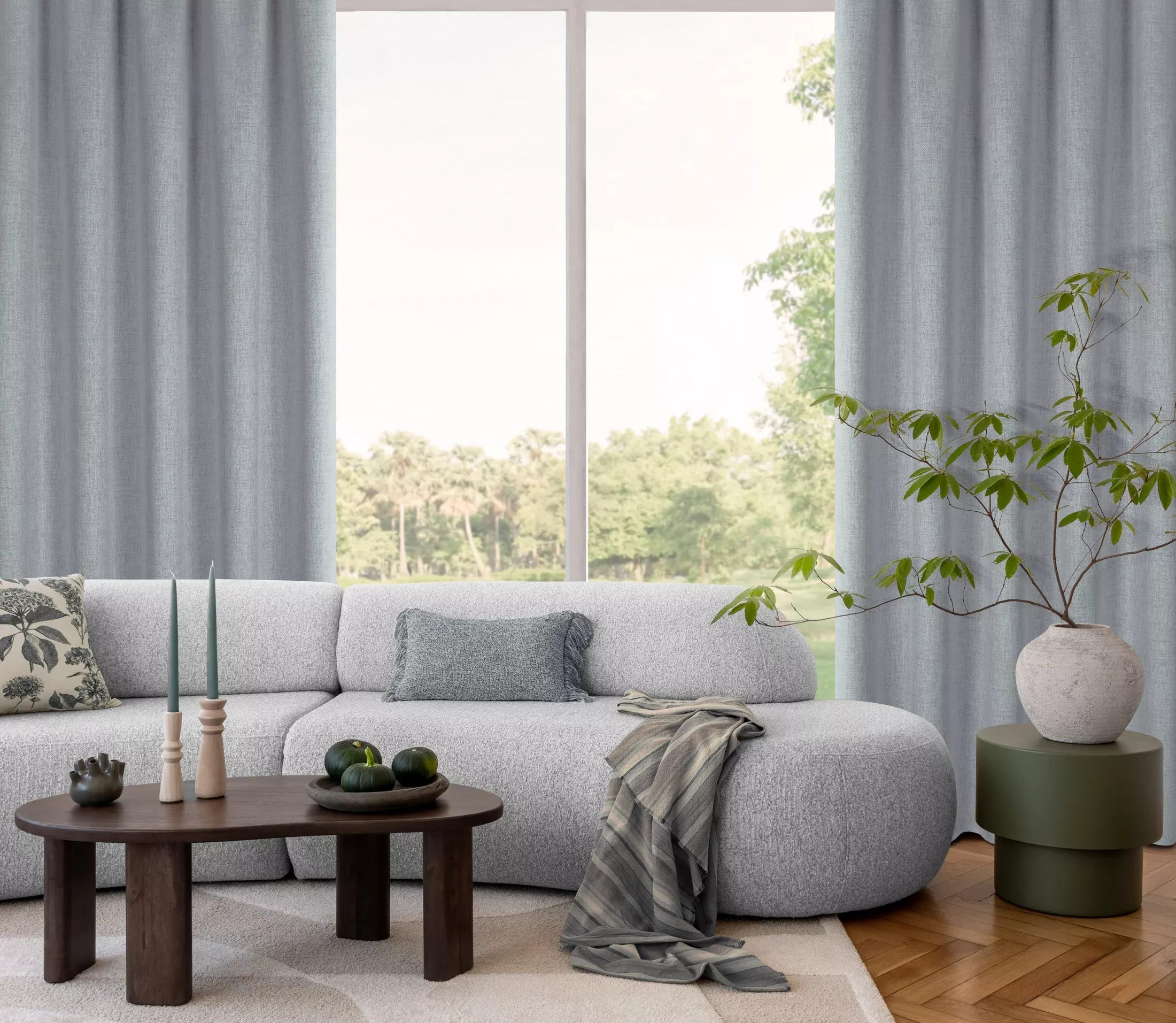 Jula2 - TRENDY eko provedení - látka volněji tkaná s plátěnou strukturou, barva modrošedá melanž, velikost 170x270cm, výšku lze zkrátit