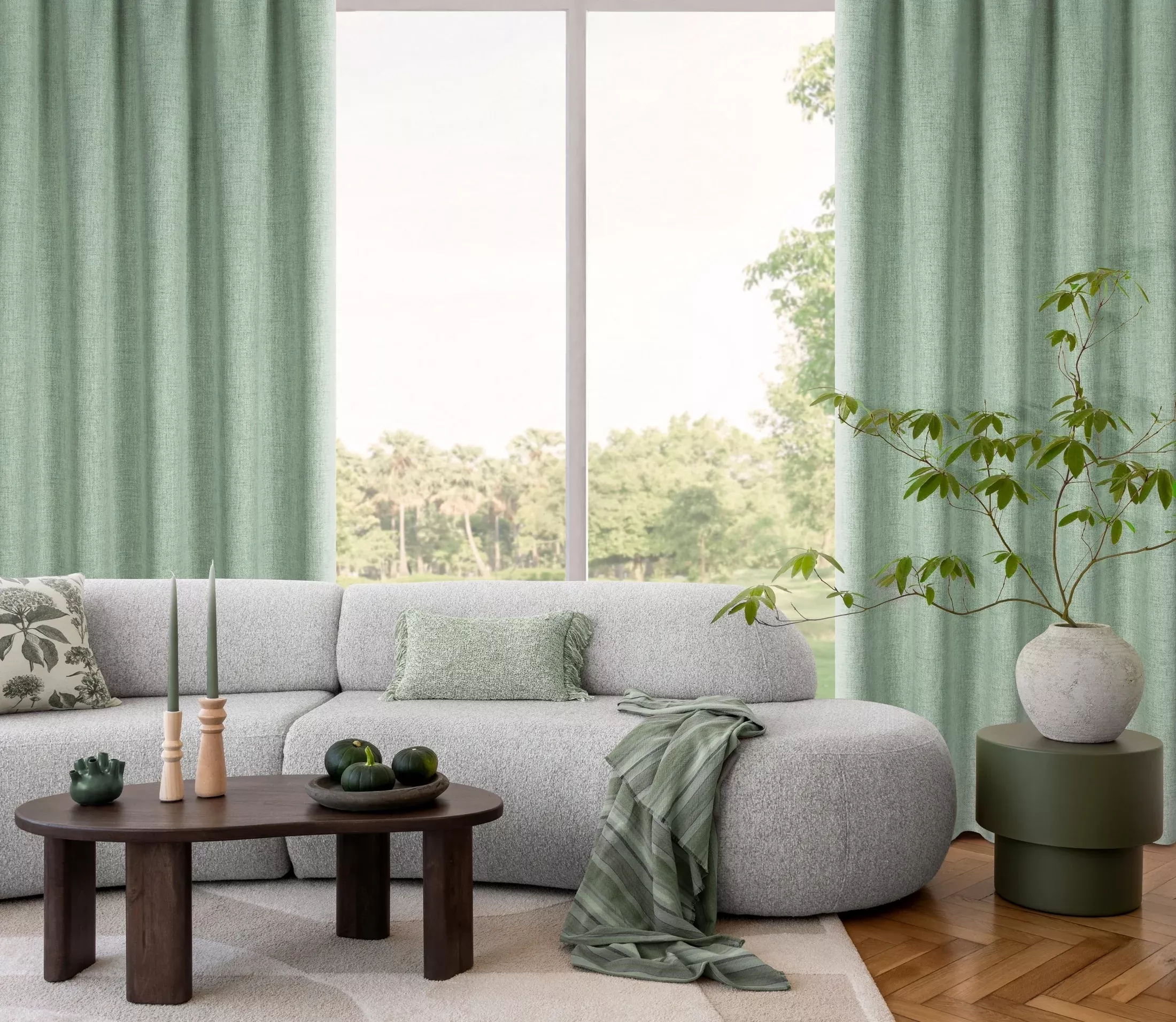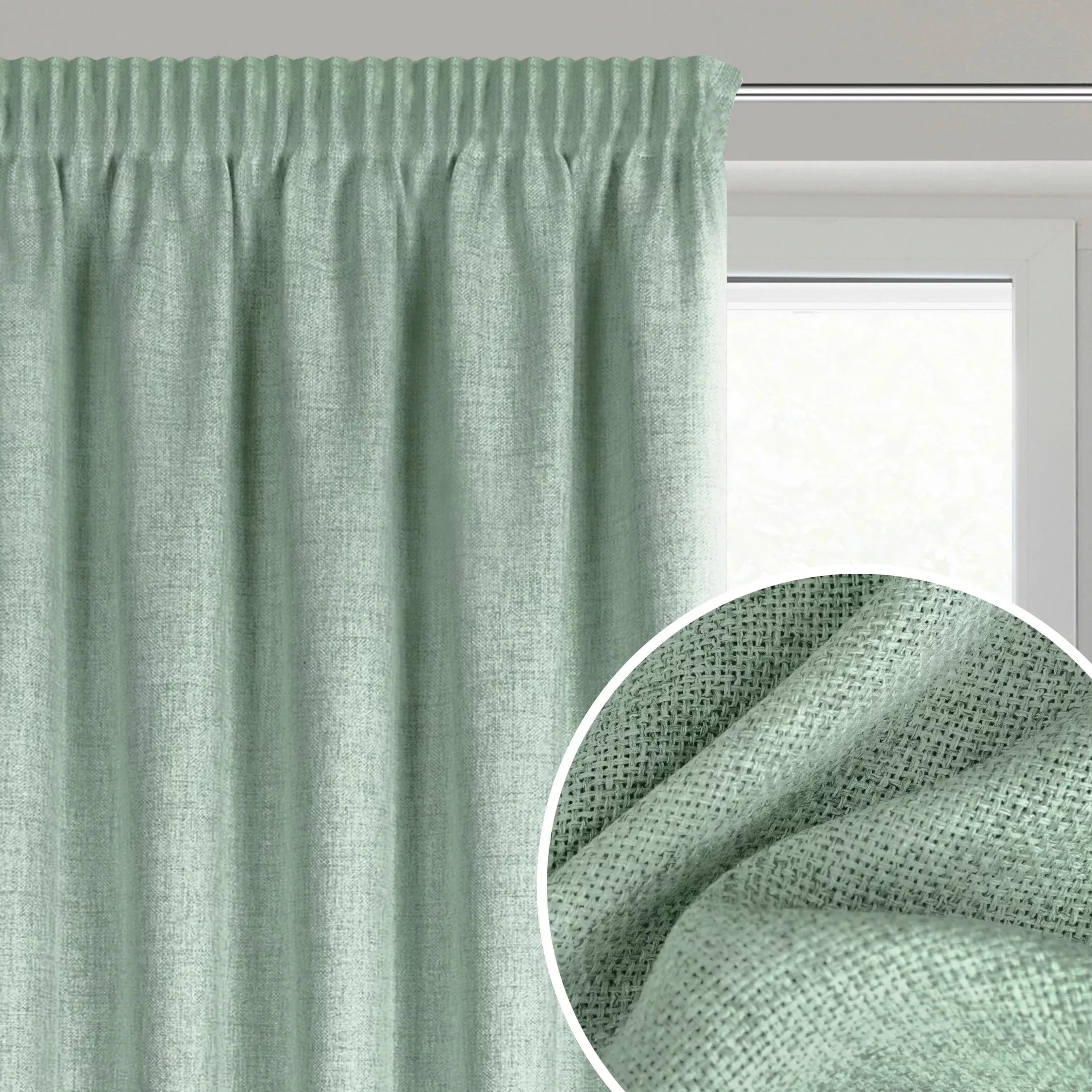 Jula2 - moderní TRENDY látka - přírodní plátěný vzhled, látka volněji tkaná, barva zelená mátová melanž