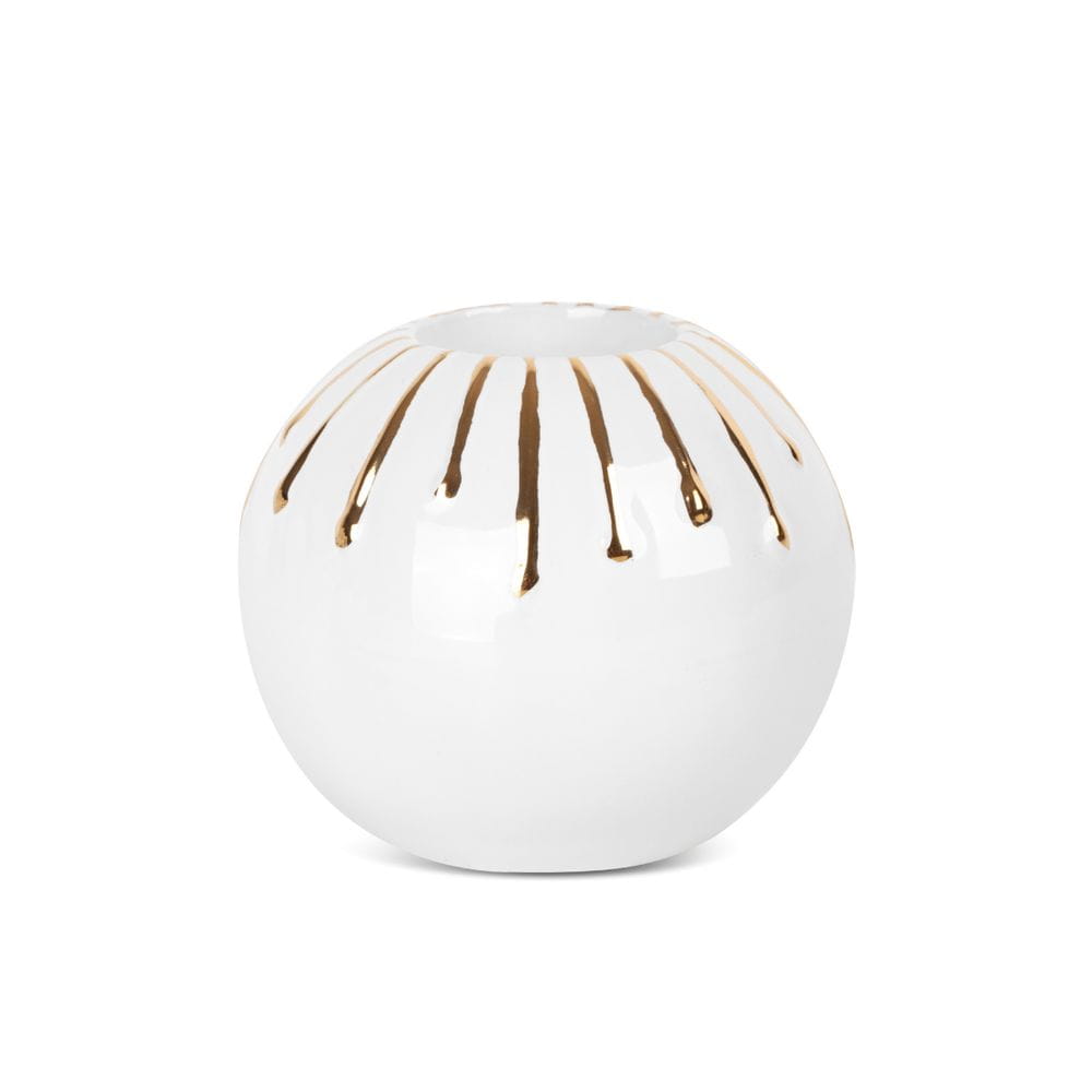 Svícen dekorační Luis, kolekce La Belle, keramika s bohatou glazurou, v horní části zlatá dekorace splývajících pramínků, velikost průměr 10cm, výška 9cm