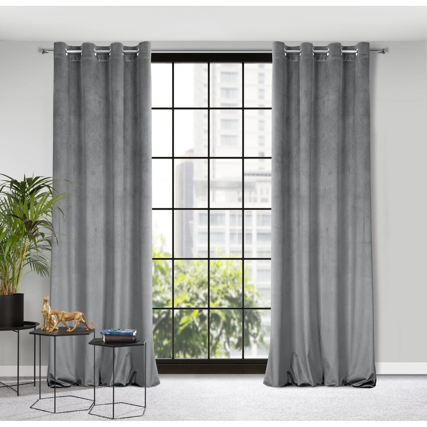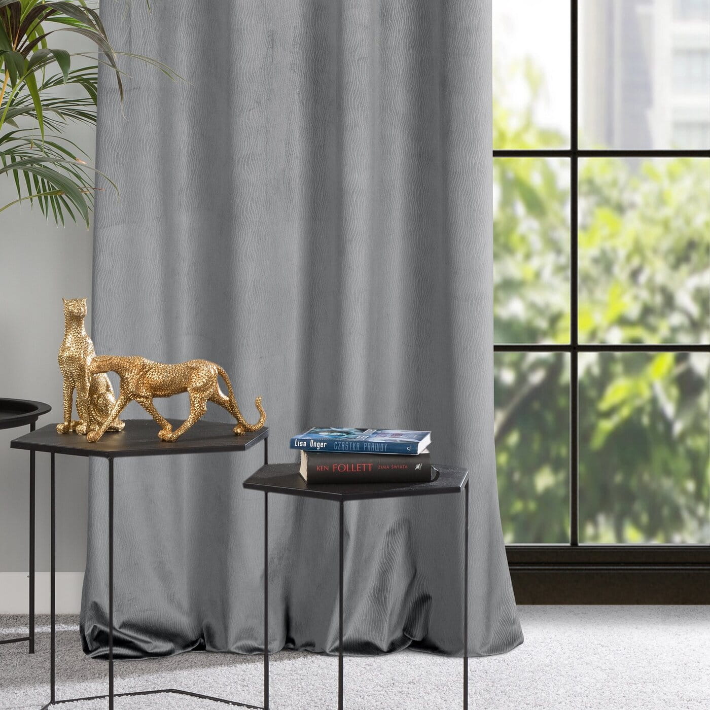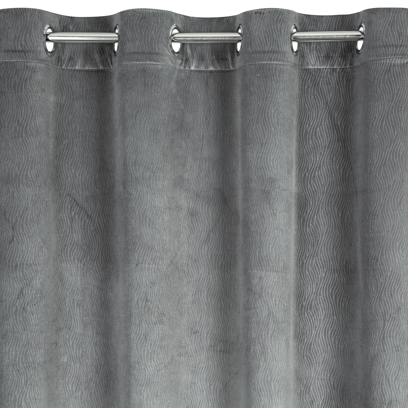 Lili - efektní velvetové závěsy s vlnovým vzorem v látce, ocelově šedá barva, na kroužcích, velikost 140x250cm, lze zkrátit