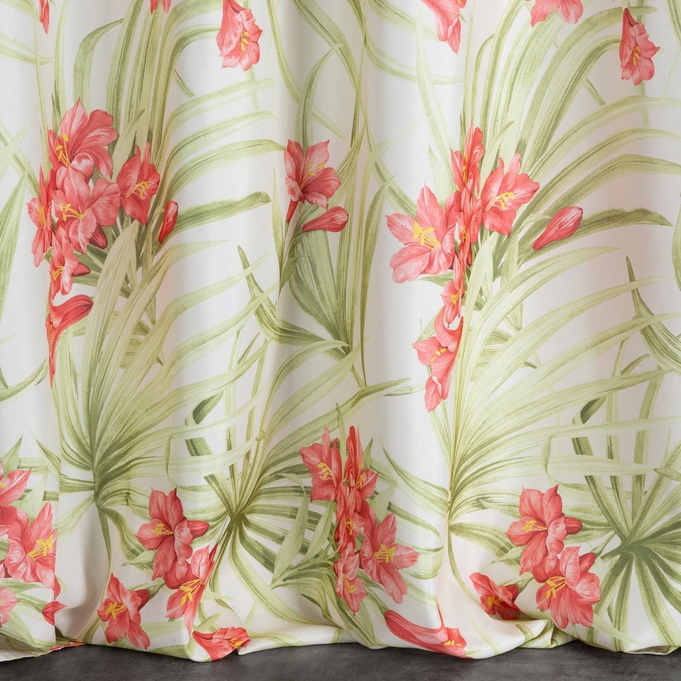 Mari - závěs s botanickým potiskem, červené ladění, na kroužcích, velikost 140x250cm, lze zkrátit