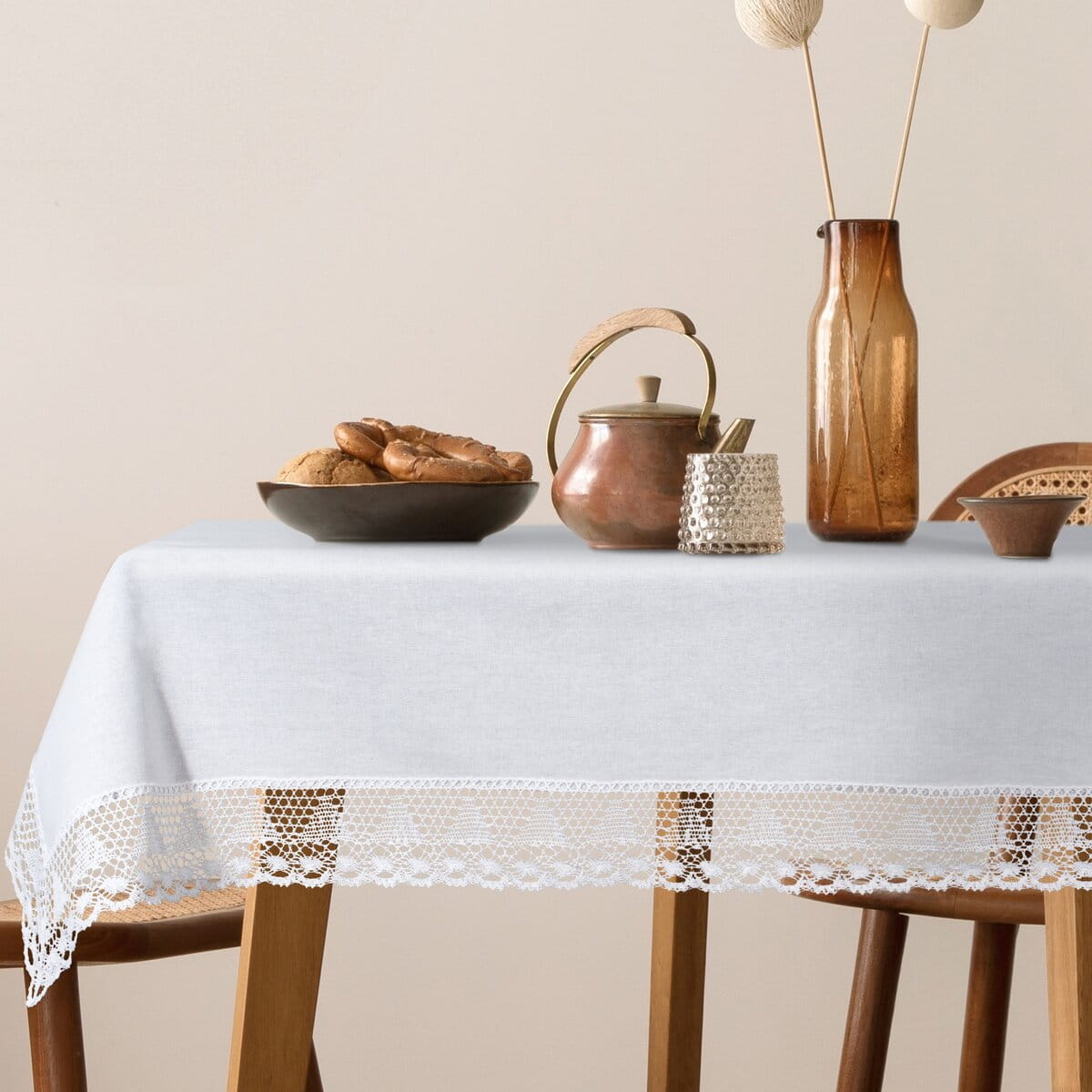 Dekorační ubrus Nataly, bílý, po obvodu krajkový lem.