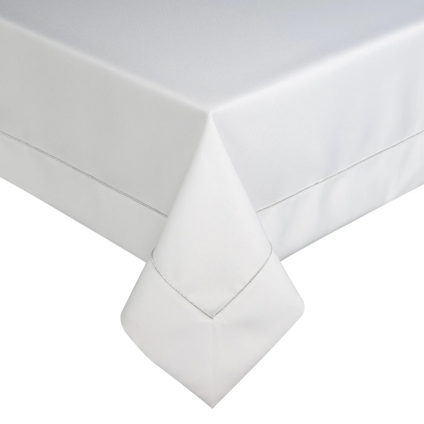 Obdélníkový ubrus Karin bílý se stříbrnou lištou, velikost 140x180cm, dárkové balení, dostupné další velikosti