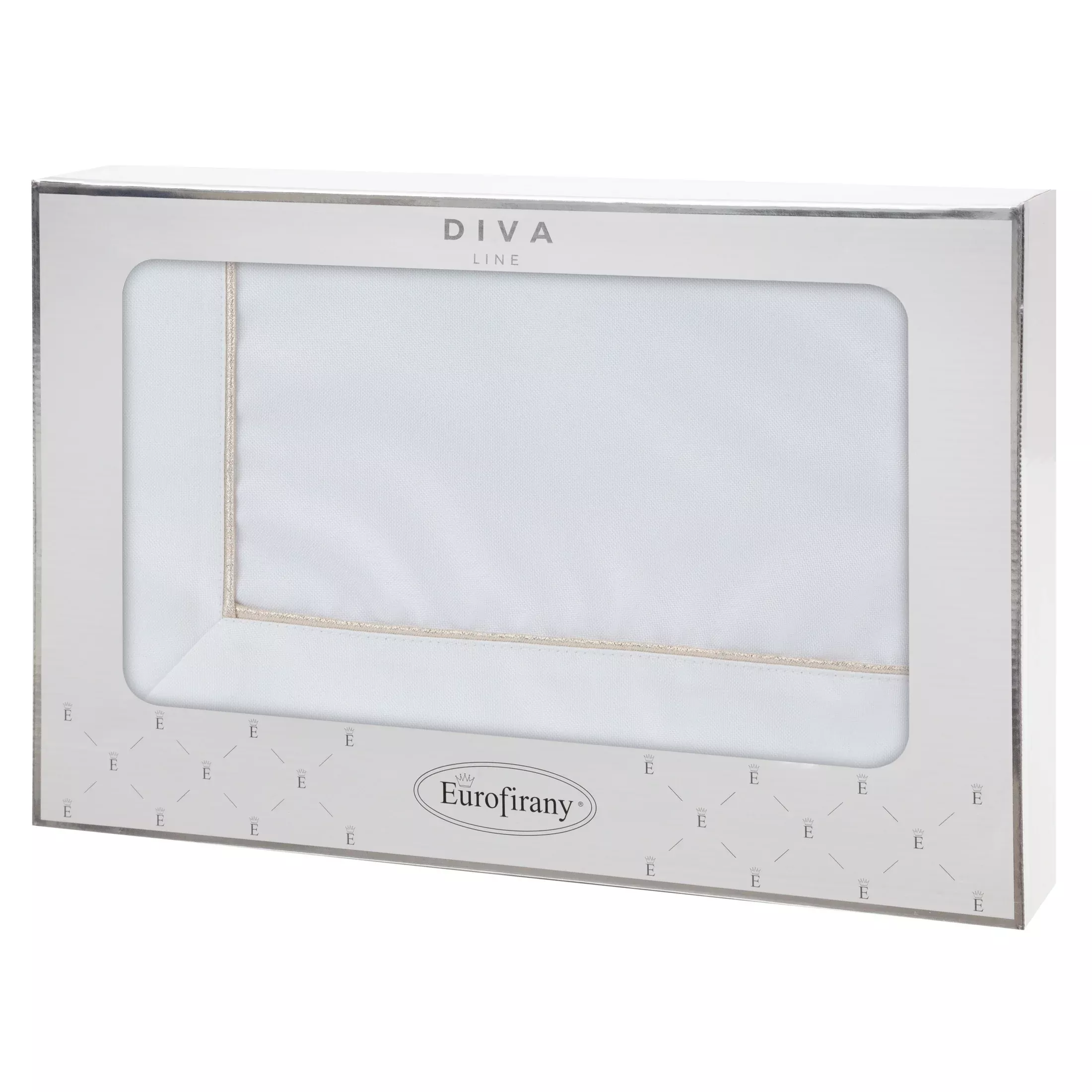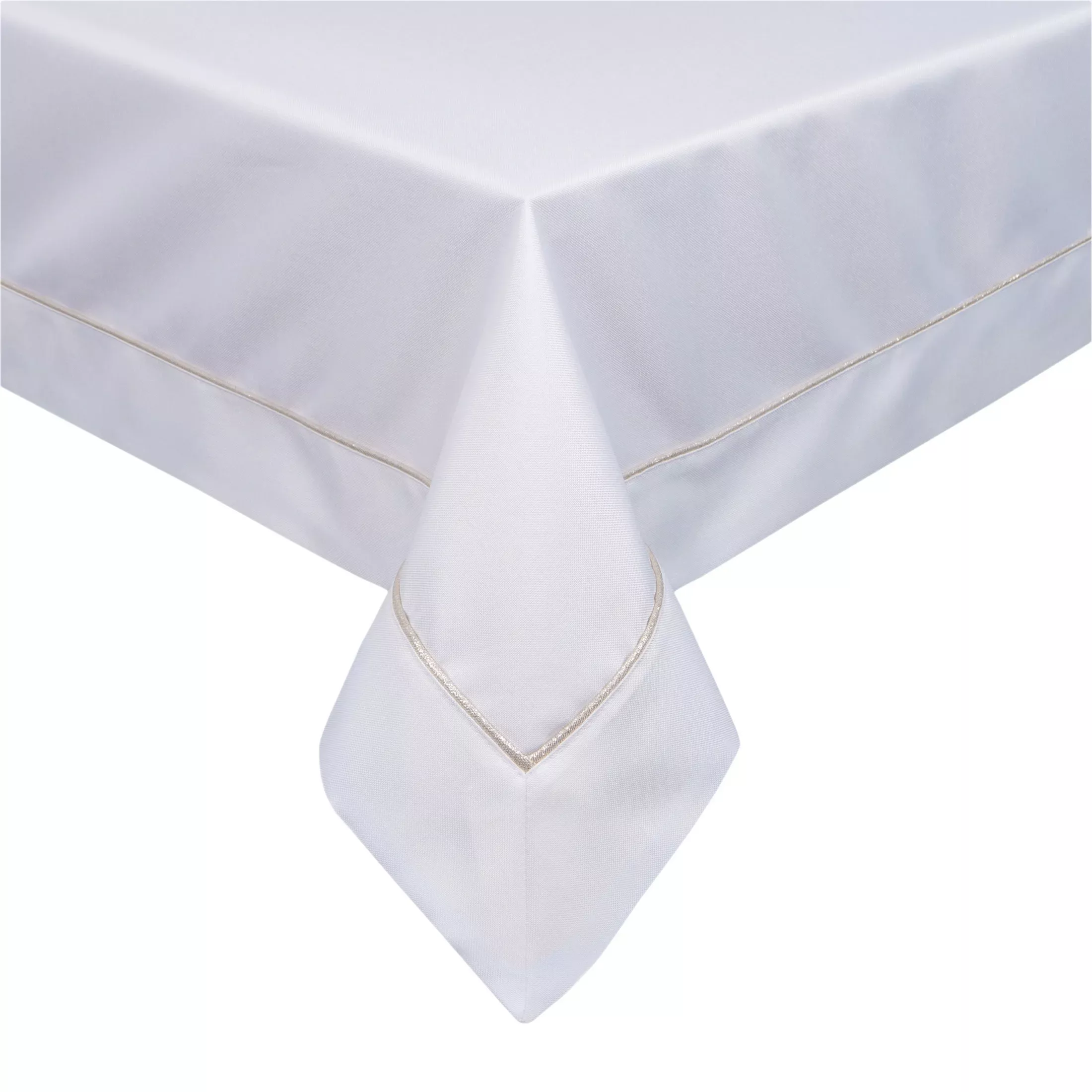 Ubrus Karin, bílá látka + zlatá paspulková lišta po obvodu, látka s jemně viditelnou strukturou, elegantní široký lem, velikost 140x180cm.