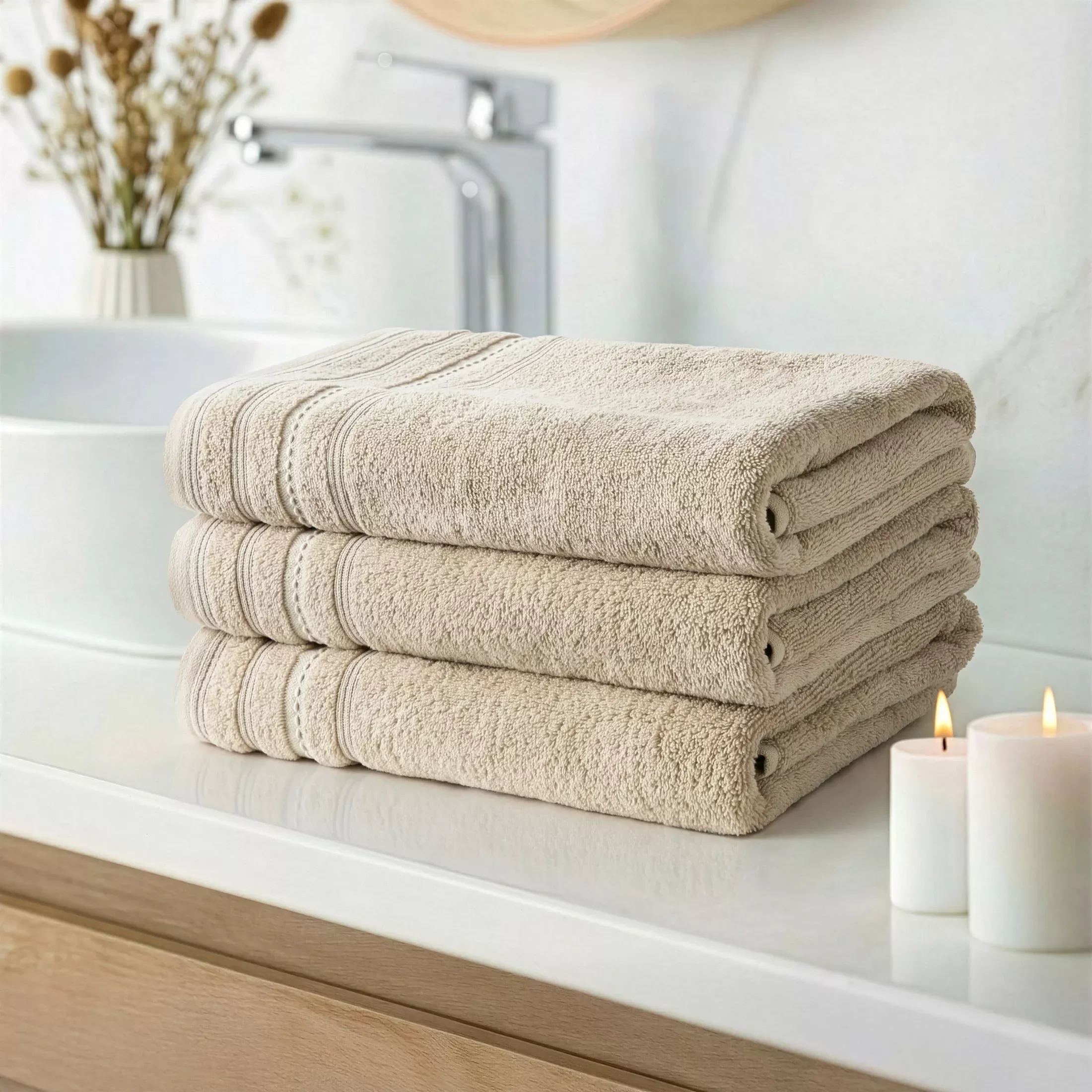 Osušky Vento, barva béžová, dekorace bordury kontrastními proužky, gramáž 500g/m2