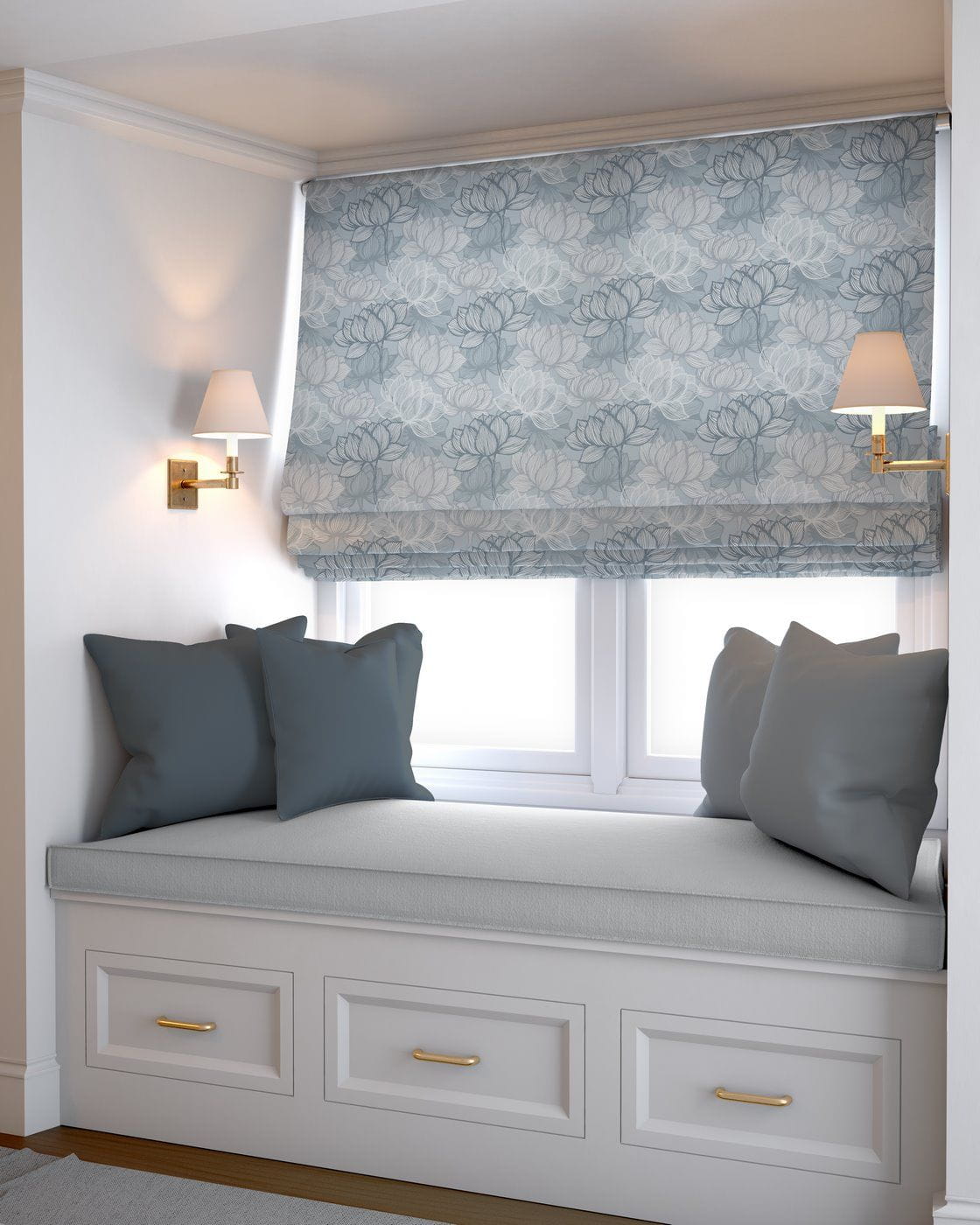 Římská roleta šitá na zakázku na míru, látka Gard 552 - látka s drobnou strukturou, stylizovaná jemná květová kompozice v modré koloristice
