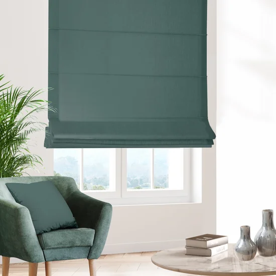 Římská roleta šitá na míru, kolekce BLACKOUT1, hladká polomatná látka, barva mořská