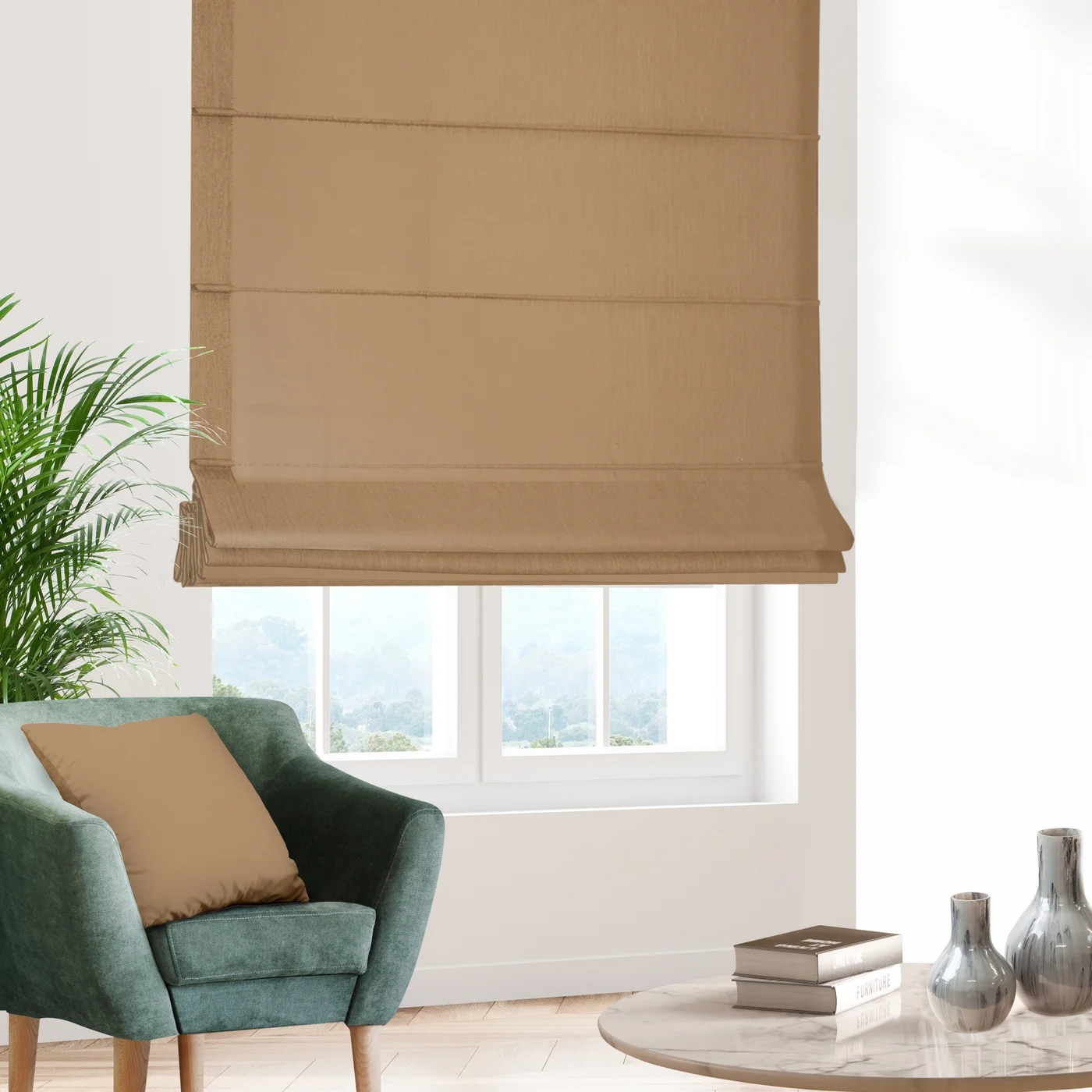Římská roleta na míru kolekce BLACKOUT1, hladká polomatná látka, barva tmavě béžová