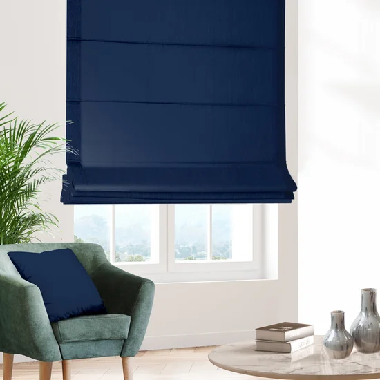 Římská roleta na míru kolekce BLACKOUT1, hladká polomatná látka, barva tmavě modrá