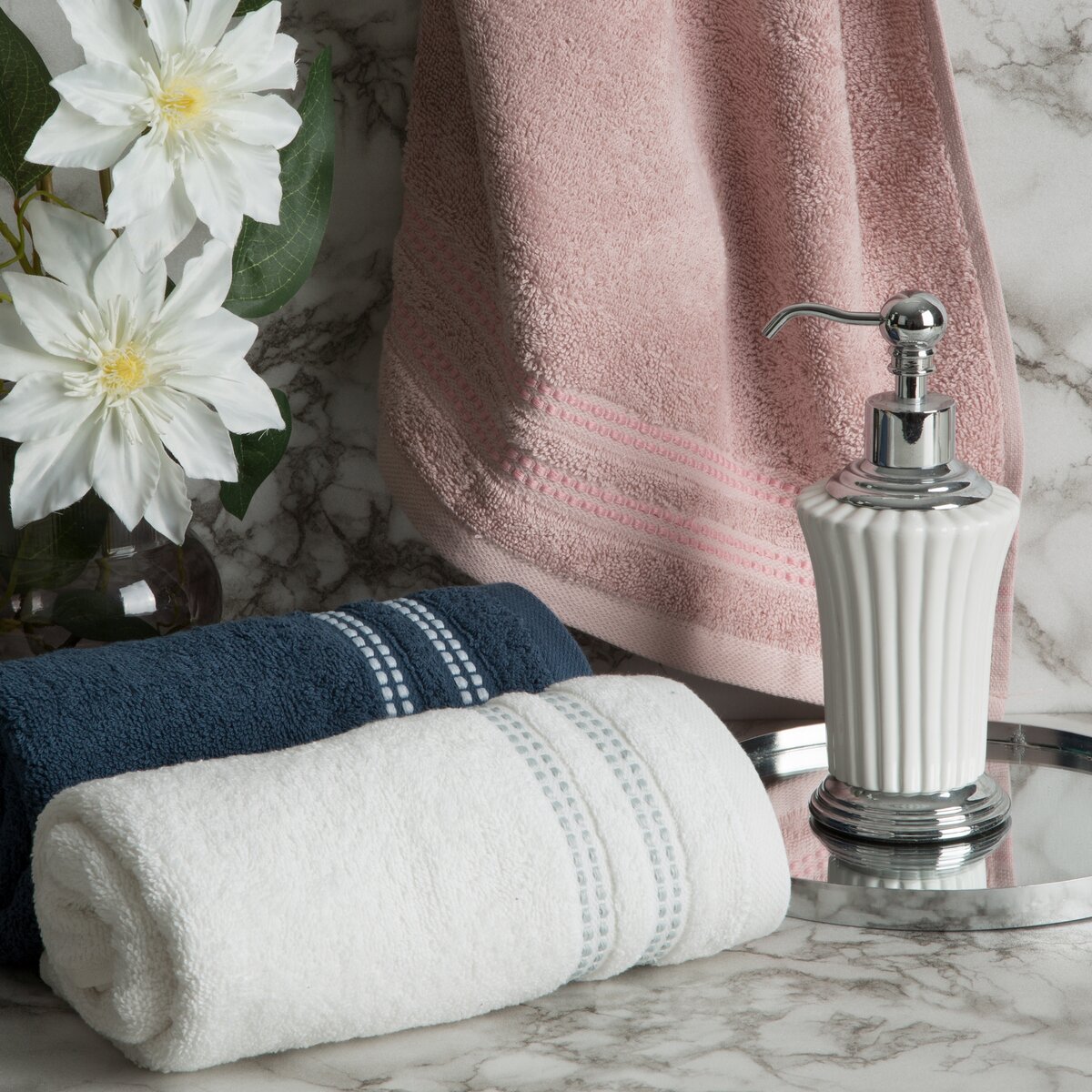Ručníky Ally, barva bílá, dekorace bordury proužky, gramáž 500g/m2
