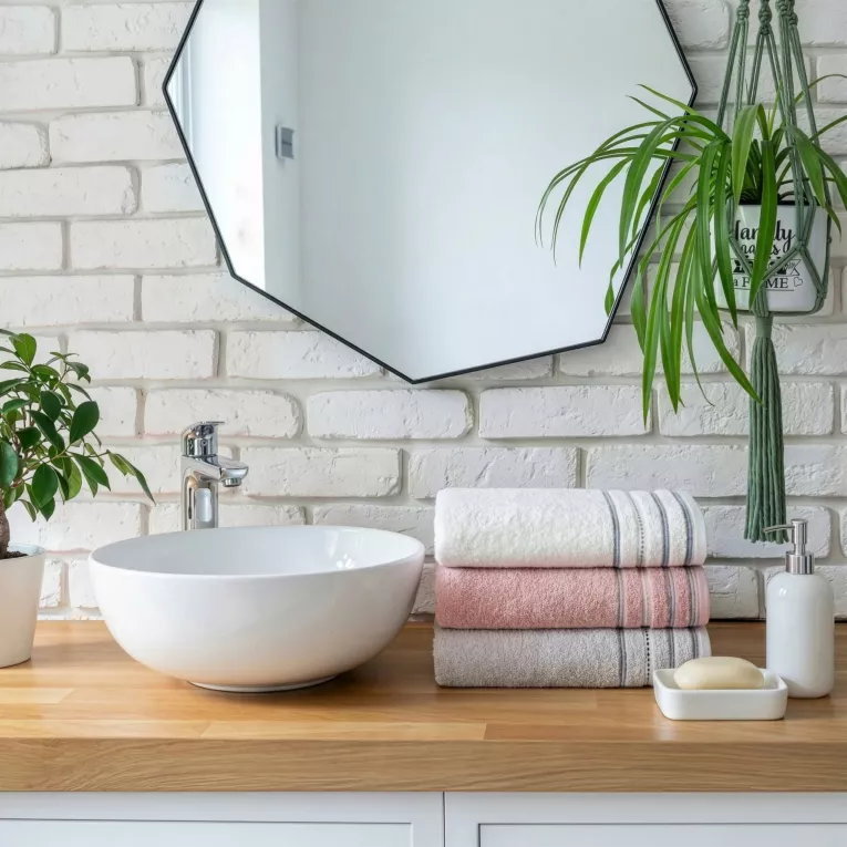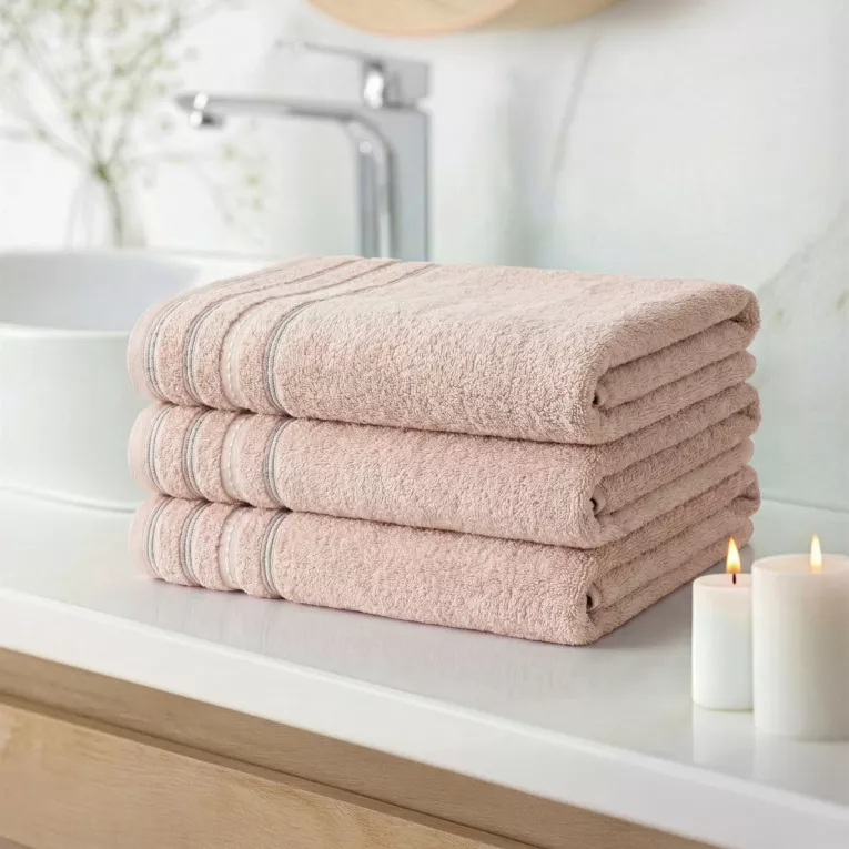 Ručníky Vento, barva pudrová, dekorační kontrastní prroužky, 100% bavlna, velikost 50x90cm, sada 3ks