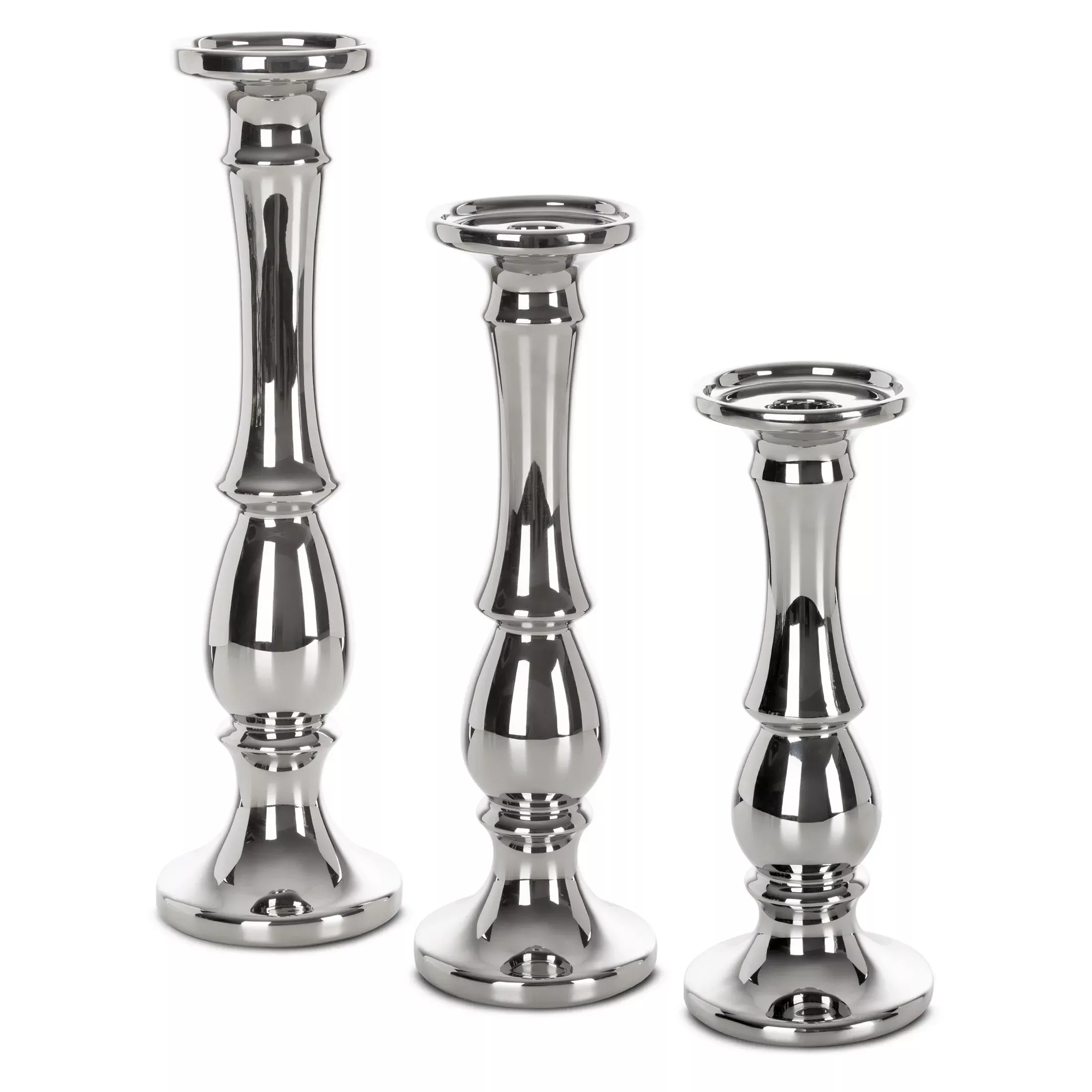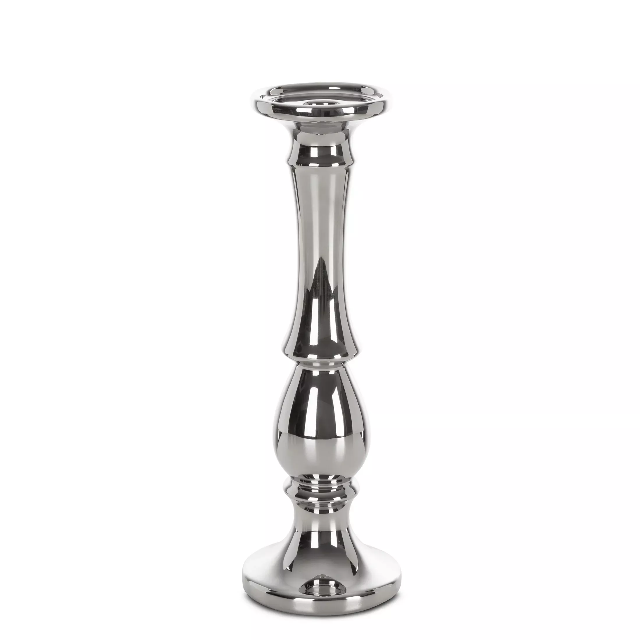 Sada 2ks svícen Joly1-2, keramika, povrch v lesklé stříbrné barvě.