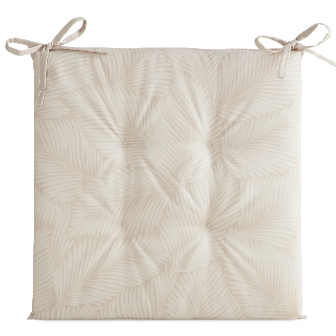 Sedák na zahradní křeslo nebo židli Garden11A, příjemná béžově-bílá koloristika s motivem palmových listů, prošití pro tvarovou stálost, vázací stužky