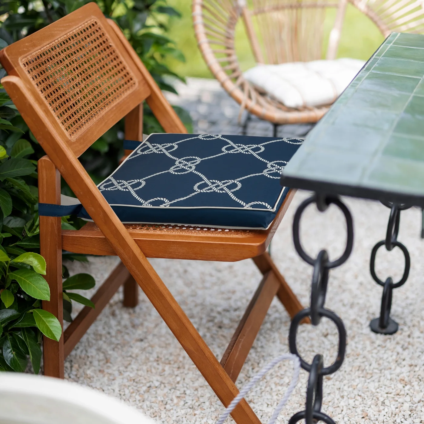 Sedák na zahradní křeslo nebo židli Garden15B, námořnický vzor v modré, vázací poutka se suchým zipem