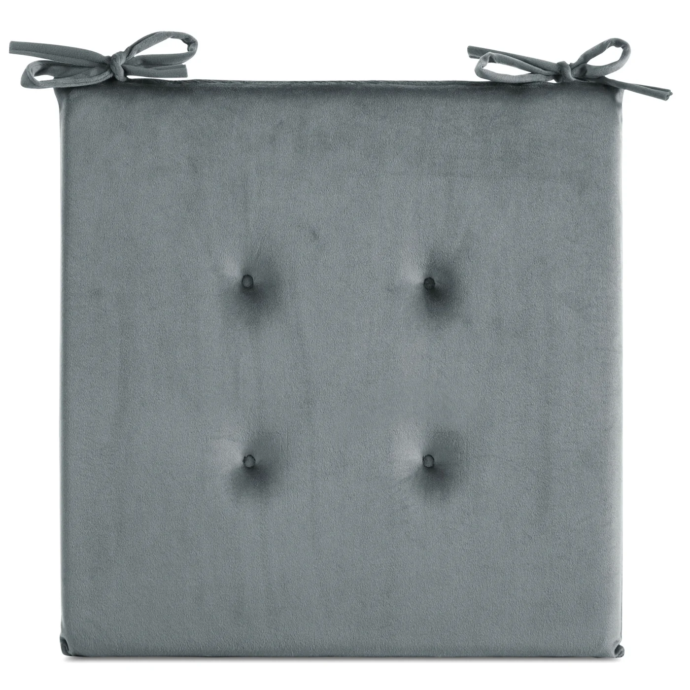 Sedák na židli Gaja, velvet - samet, prošití, velikost 40x40x3cm, vázací stužky, barva šedostříbrná