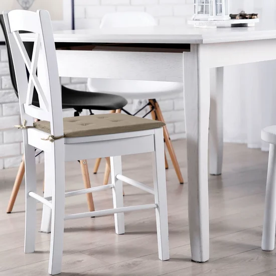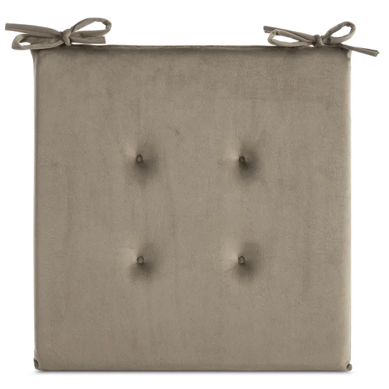 Sedák na židli Gaja, velvet - samet, prošití, velikost 40x40x3cm, vázací stužky, barva tmavě béžová