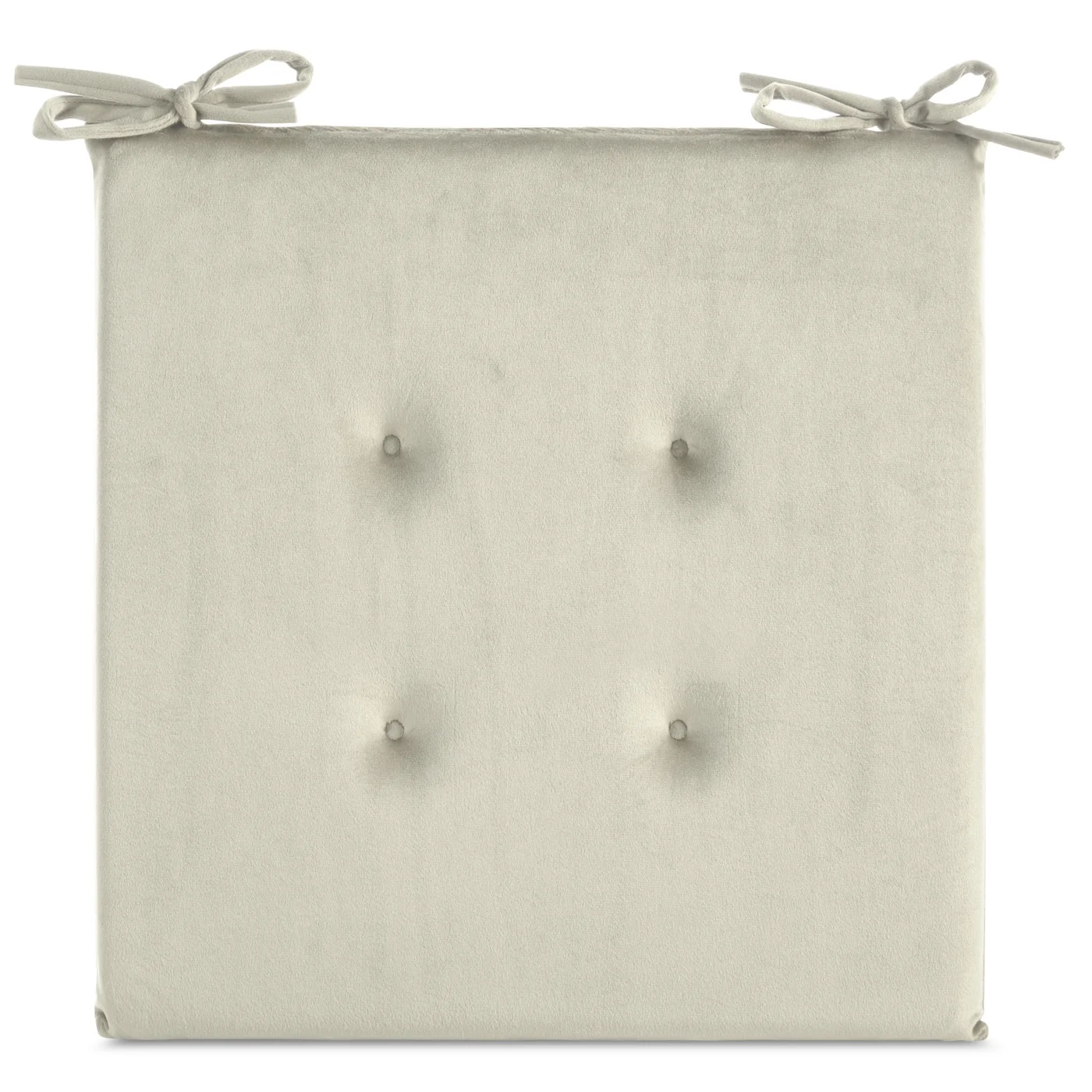 Sedák na židli Gaja, velvet - samet, prošití, velikost 40x40x3cm, vázací stužky, barva tmavší krémová