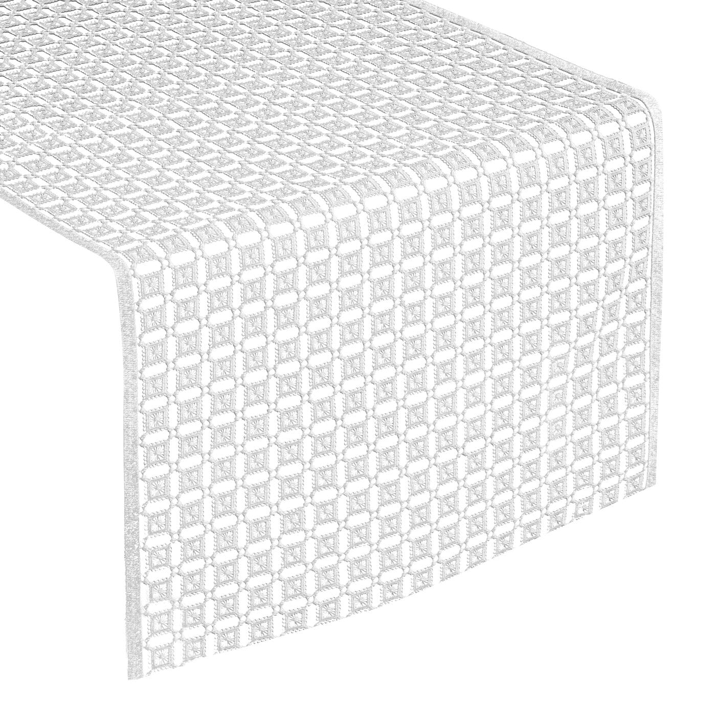 Efektní stolní běhoun Gipiu1, látka etamína ve formě ažurové paličkované krajky, s voděodolnou a nemačkavou úpravou