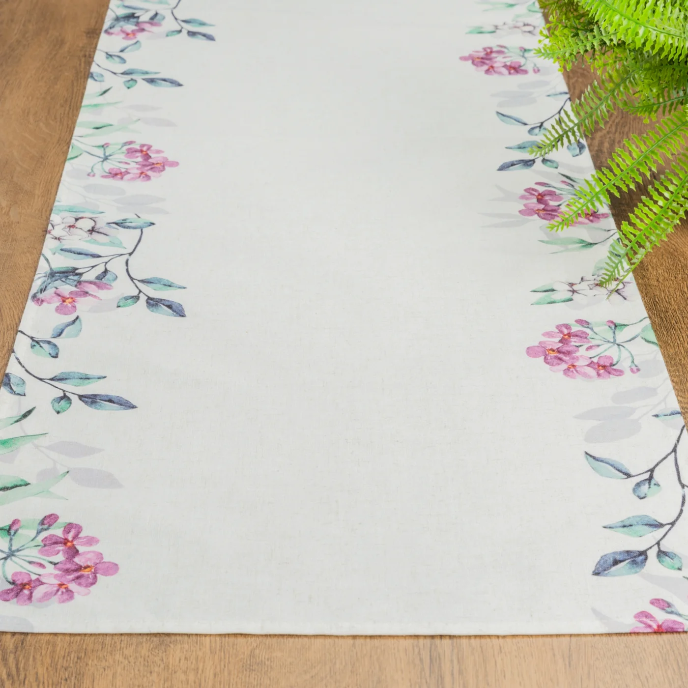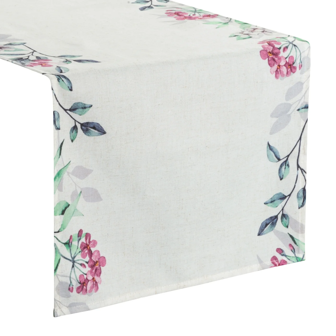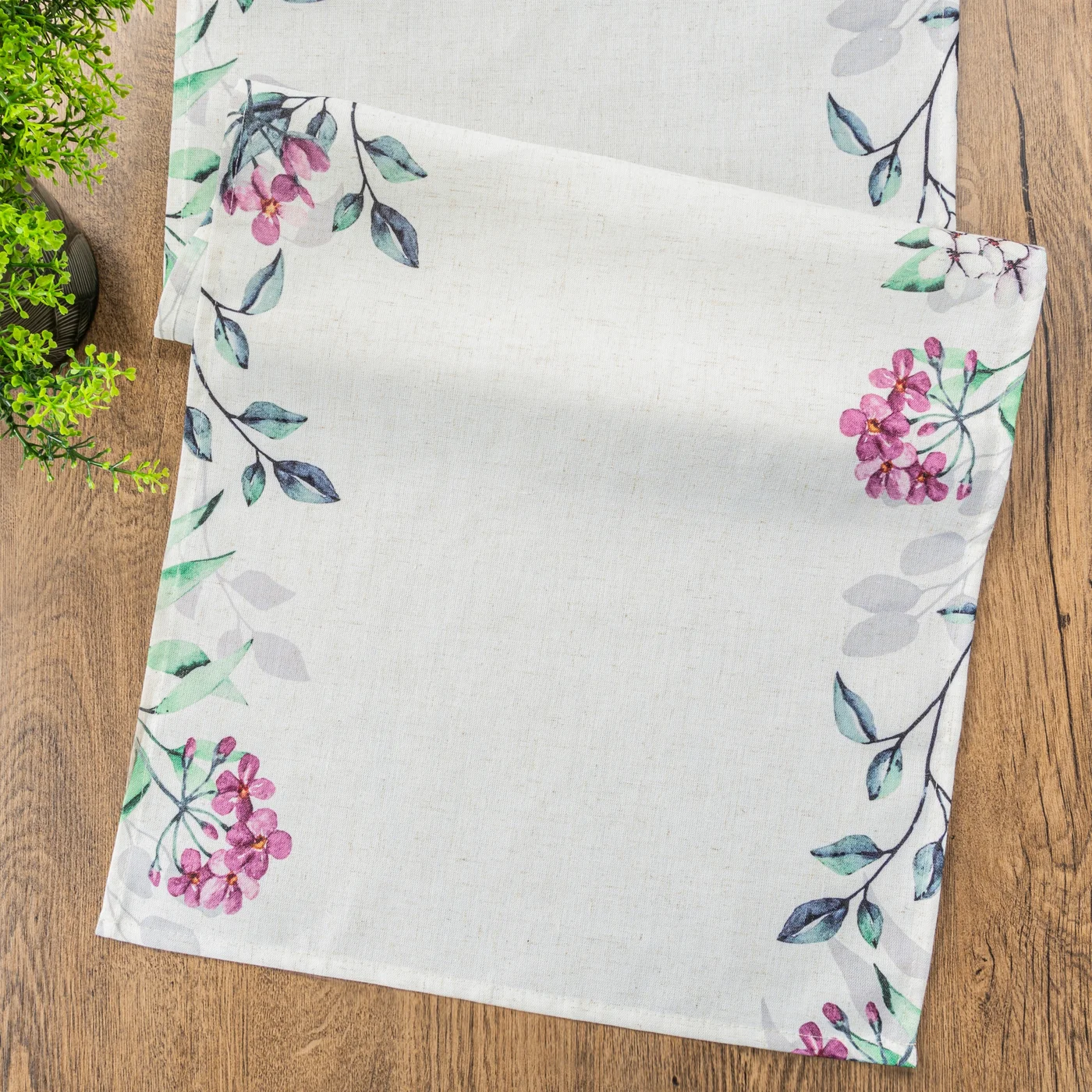 Stolní běhoun z řady Natura, stylizovaný květový potisk na světlém pokdladu, vzor 7