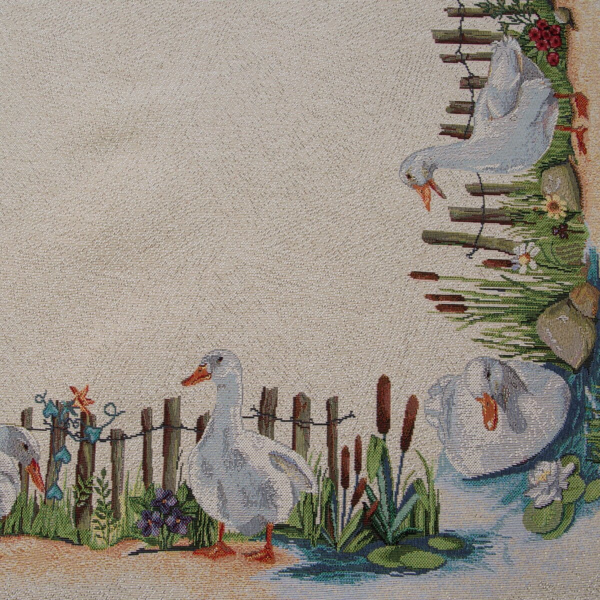 Dekorační stolní běhoun, gobelínová žakárová látka, TKANÝ jarní motiv, vzor 4097N, přírodní podklad - není to potisk!