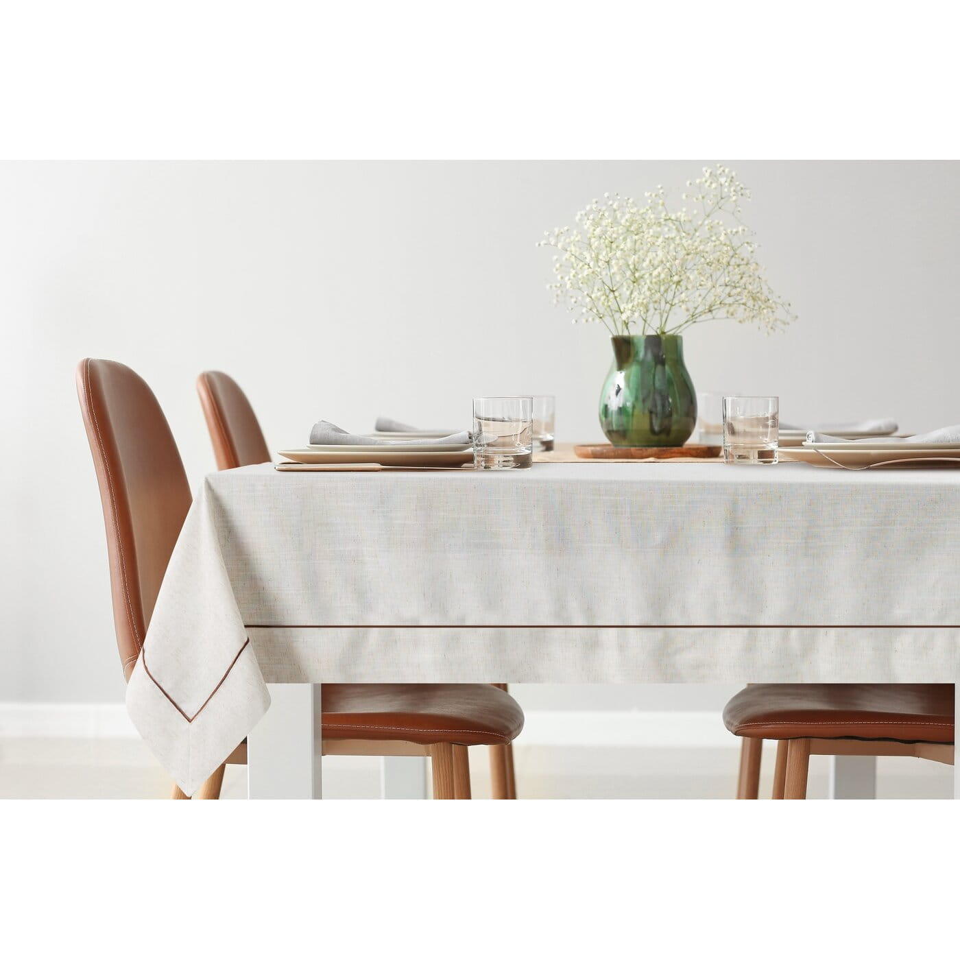 Stolní ubrus Natu9 s dodatkem lnu, široký lem, 2 velikosti - šíře 140cm, délka 180cm nebo 220cm