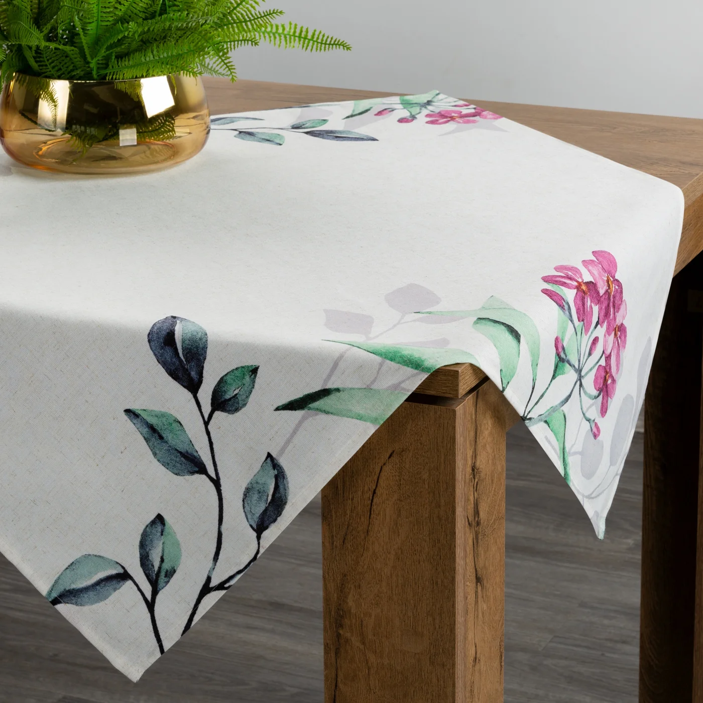 Stolní ubrus z řady Natura, stylizovaný květový potisk na světlém podkladu, vzor 7
