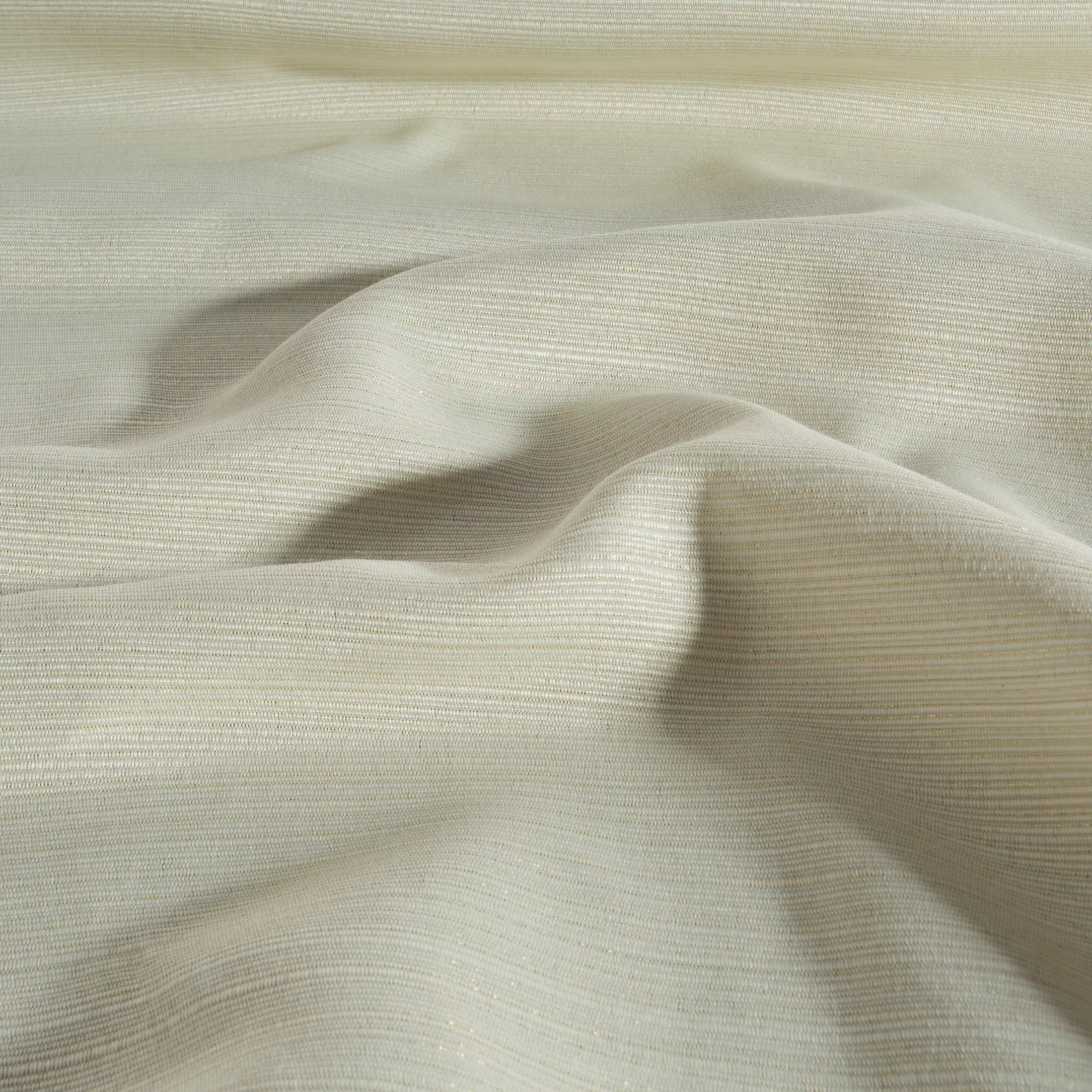 Ubrus Glamo, béžový, splot látky s drobnými proužky a jemným dodatkem lesklé nitky, velikost 140x180cm.