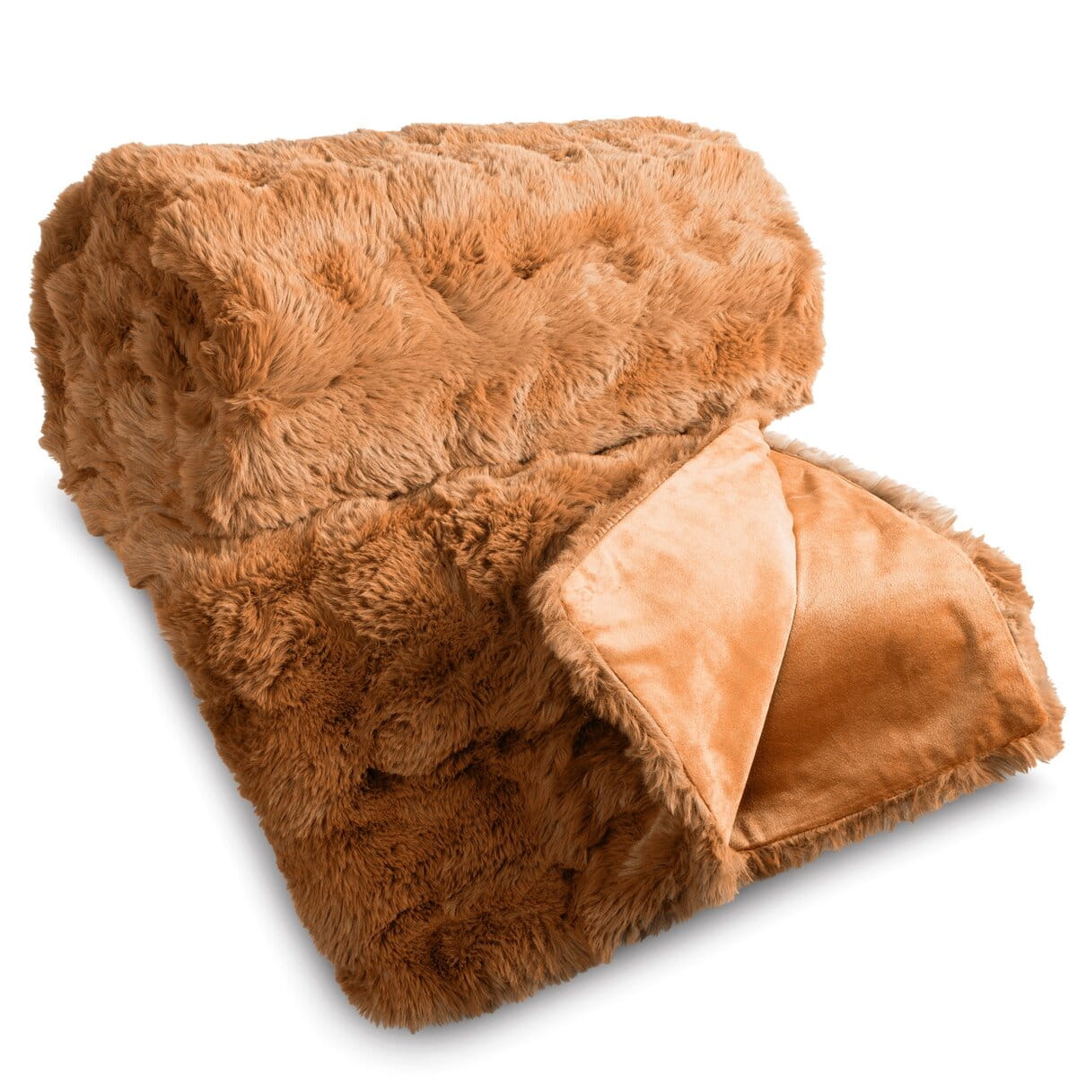 Velká deka Lily, kožešinový vysoký 3D vzor, podšitá hladkou látkou, barva medově - oranžová
