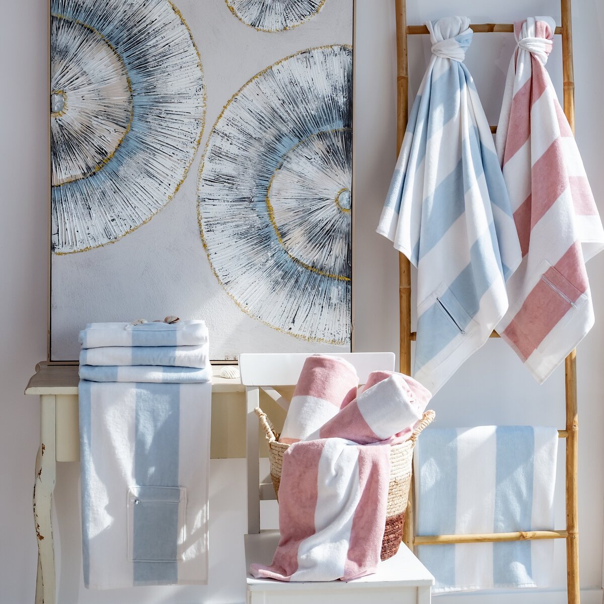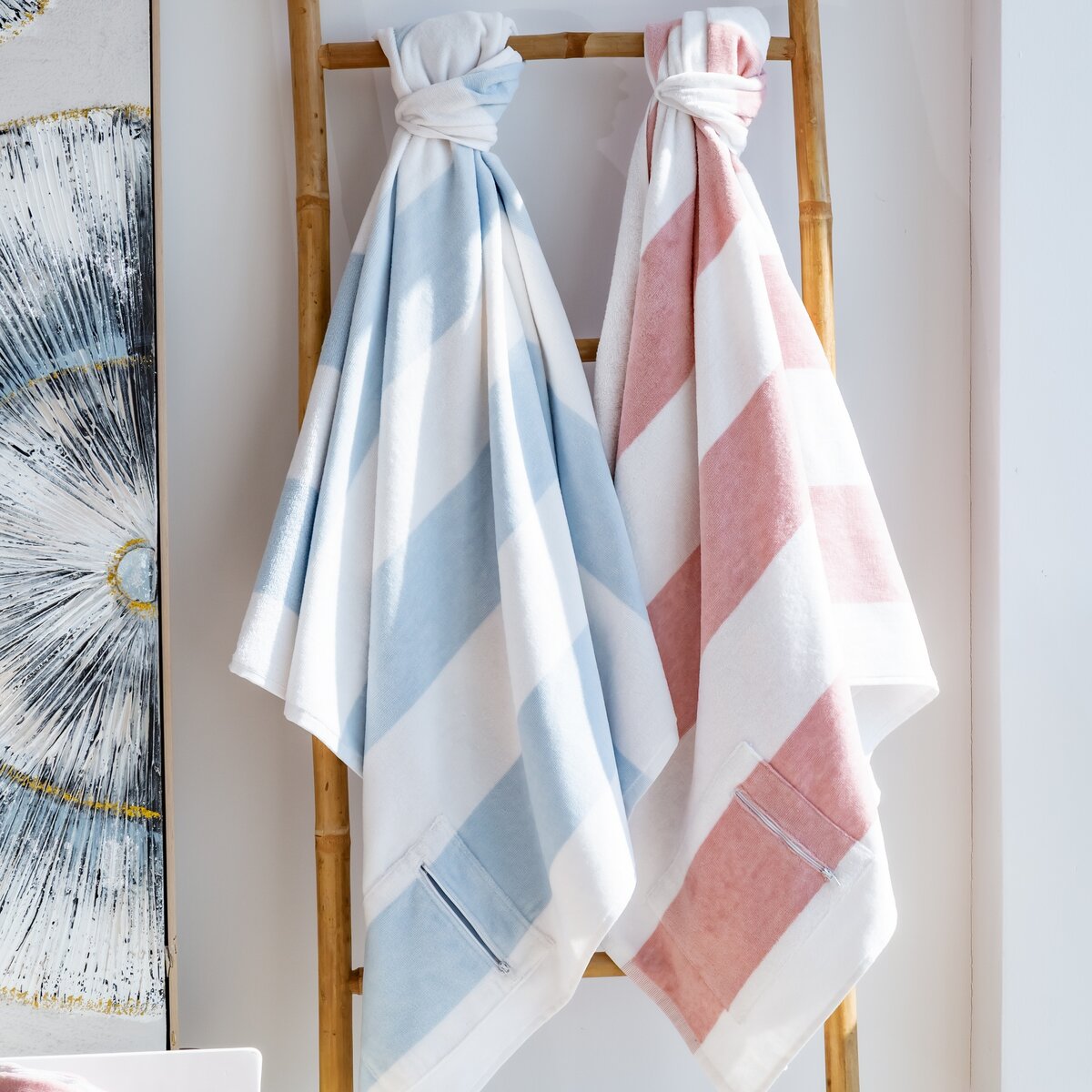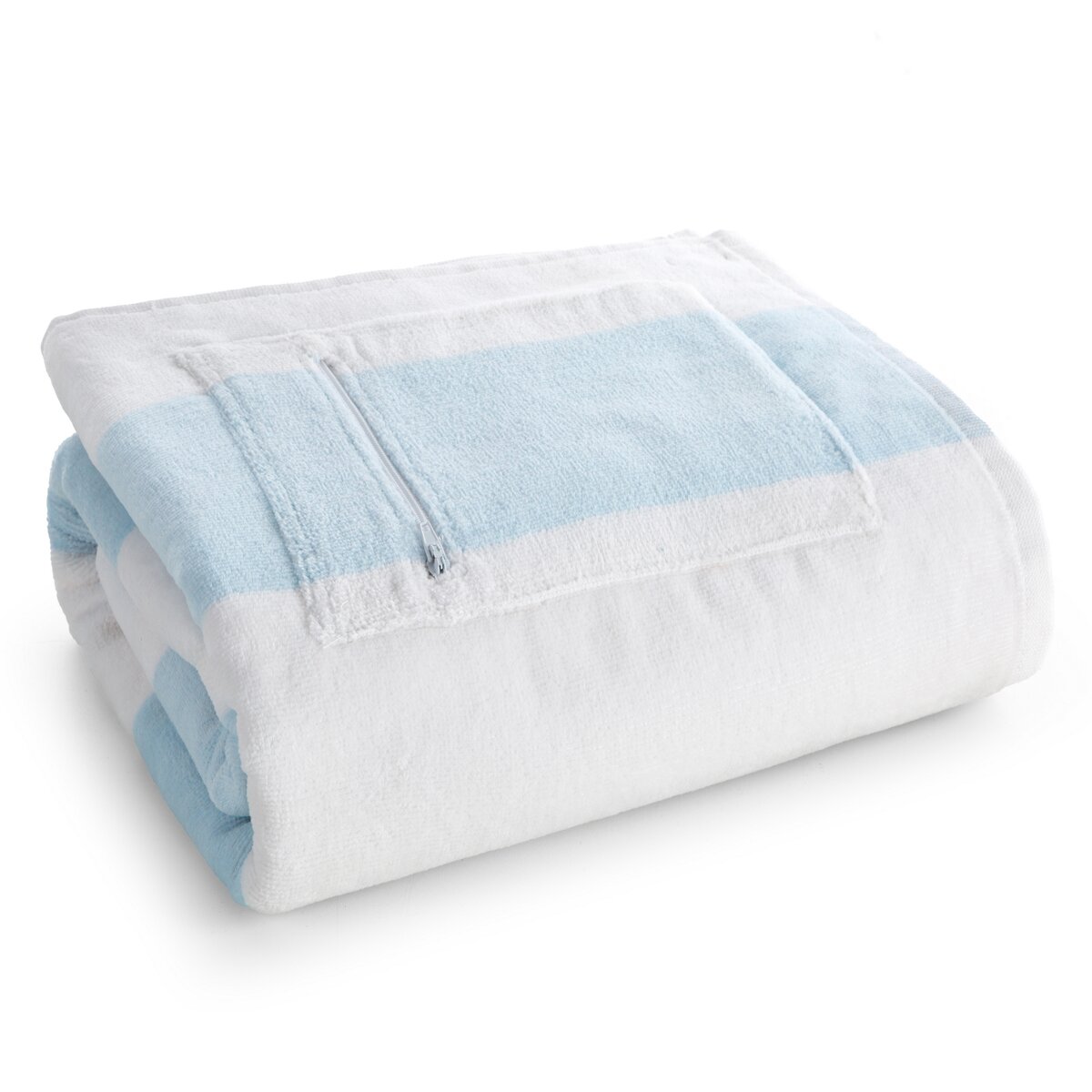 Velký plážový ručník - deka Lagun, řada Sea Summer, barva bílo - modrá, praktická kapsa se zipem